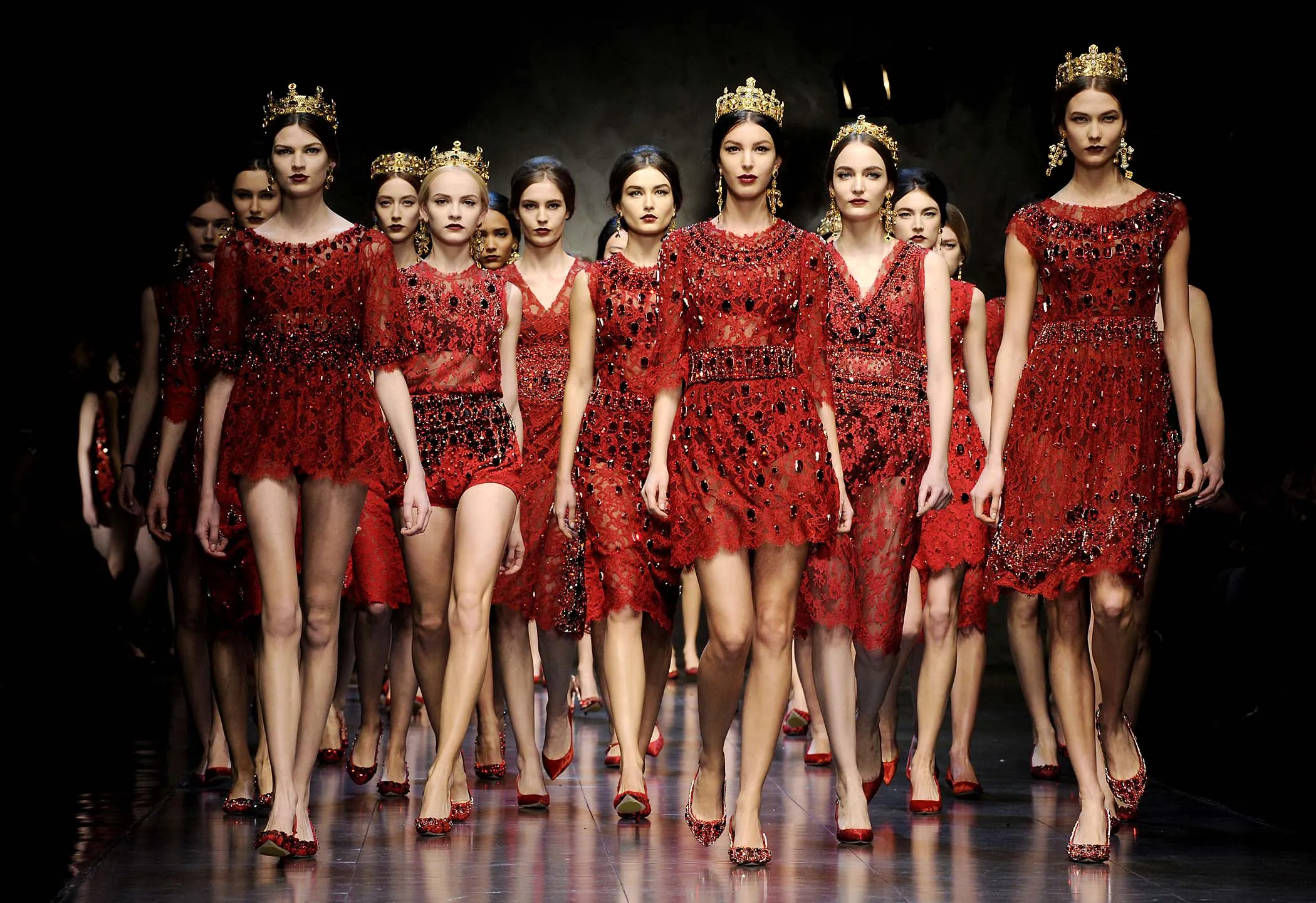 Models wear creations for Dolce & Gabbana women's Fall-Winter 2013-14 collection, during Milan Fashion Week, on February 24, 2013. (Photo by Giuseppe Aresu/Associated Press)