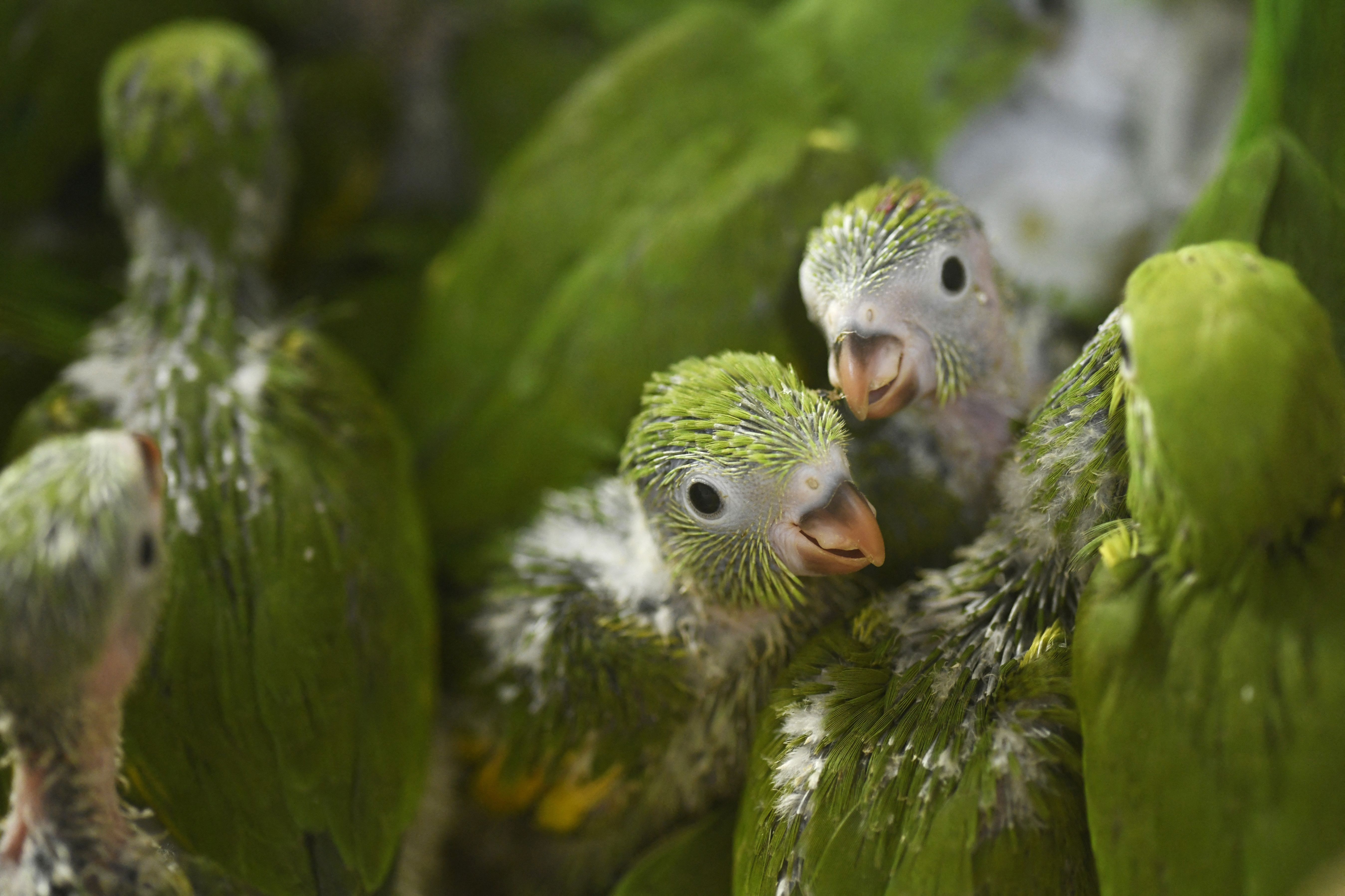 Baby parrots rescued by the firefighters are seen during a wildfire in Concepcion, Santa Cruz Department, Boliva, on September 25, 2024. Bolivia has registered so far this year a total of 3,872,498 hectares of forests and grasslands destroyed by fires, more than in all of 2023, informed the Minister of Environment and Water, Alan Lisperguer, on September 9. (Photo by Rodrigo Urzagasti/AFP Photo)