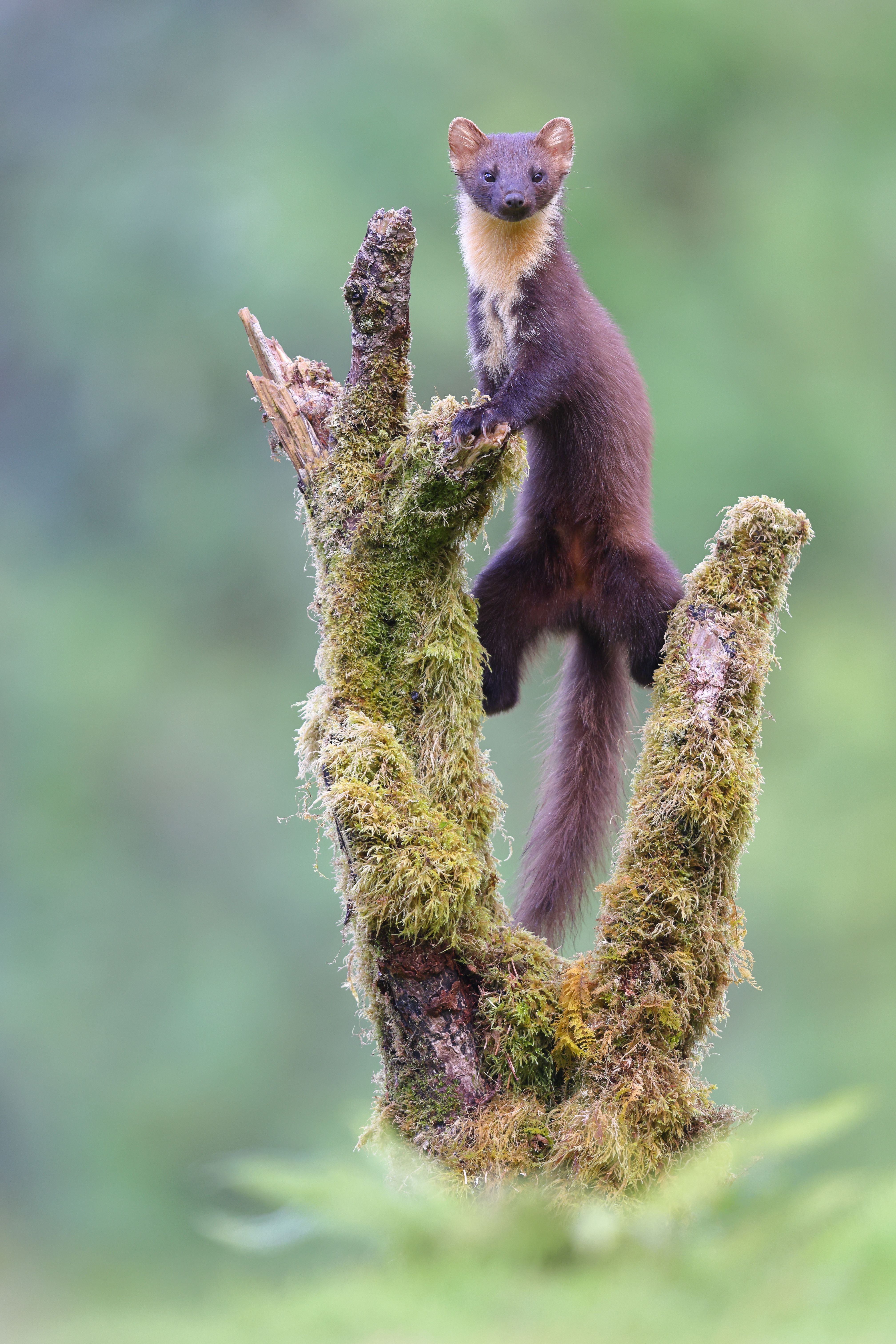 Pine martens hunt for food in the early evening on the Ardnamurchan peninsula in western Scotland in the first decade of October 2024. (Photo by Mike McKenzie/Animal News Agency)