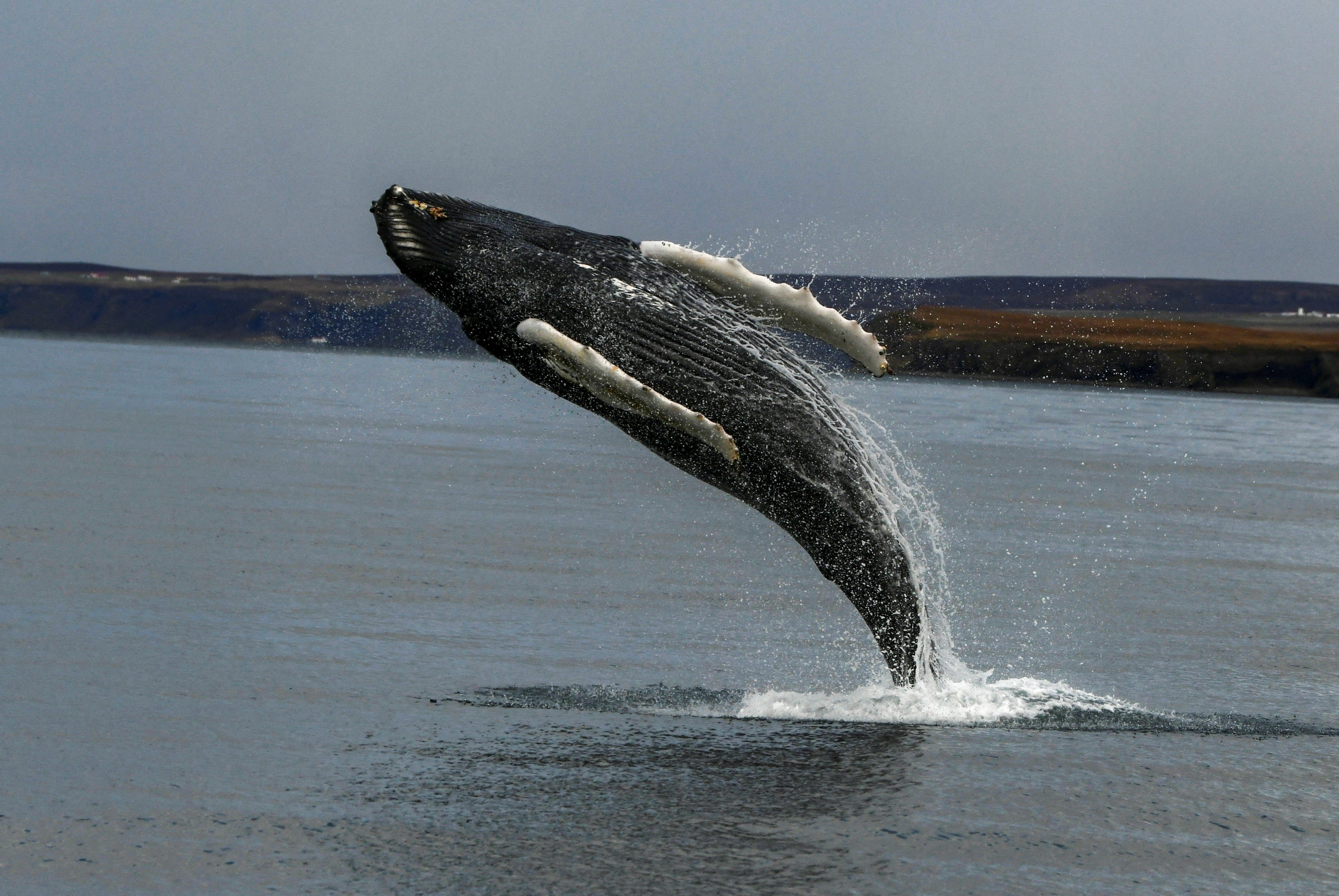A Humpback whale jumps up from the ocean in Husavik, Iceland on October 8, 2024. (Photo by Meghana Sastry/Reuters)