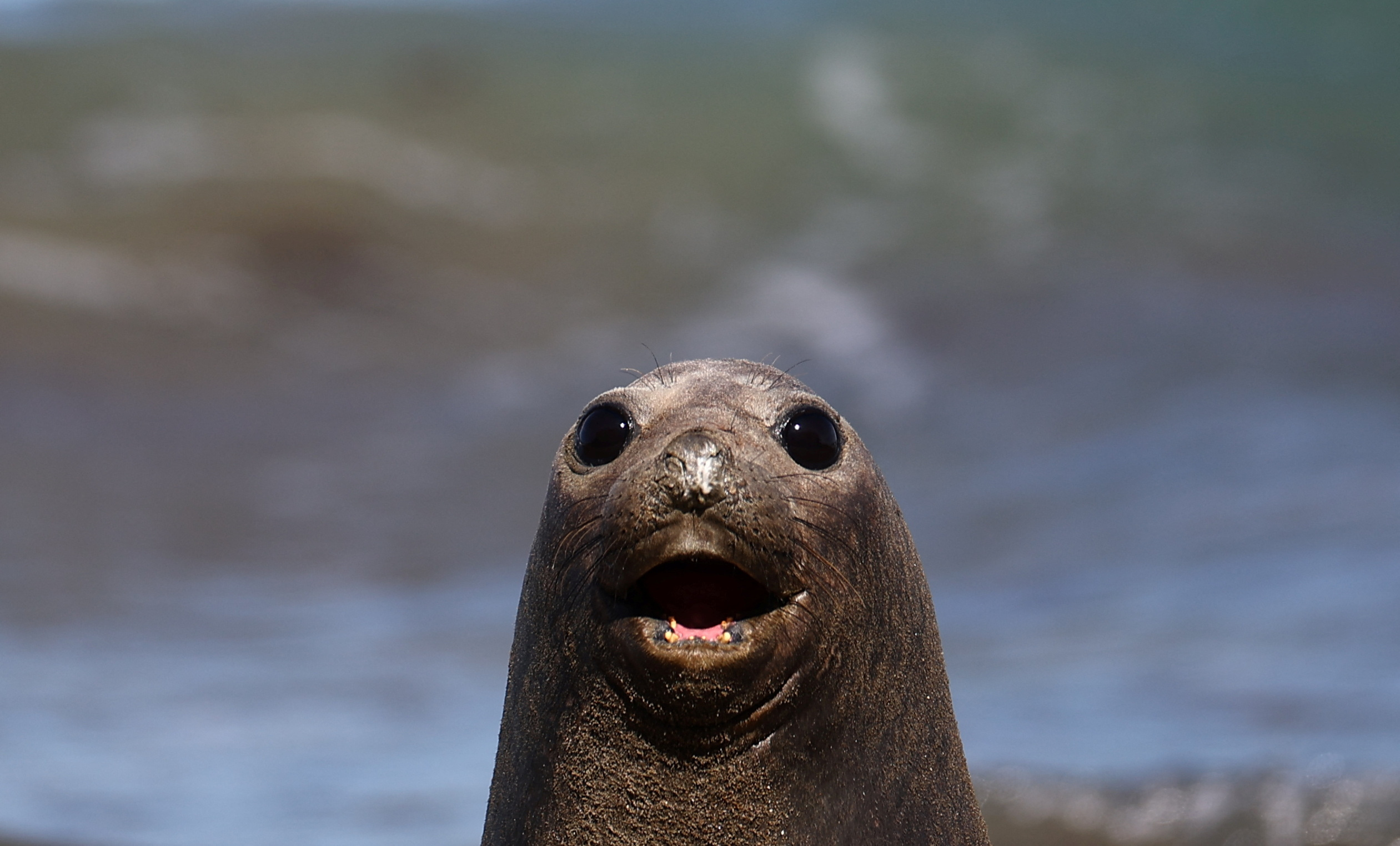 An elephant seal takes a sunbath on a beach, in Pico Sayago, in the Patagonian province of Chubut, Argentina on September 26, 2024. (Photo by Agustin Marcarian/Reuters)