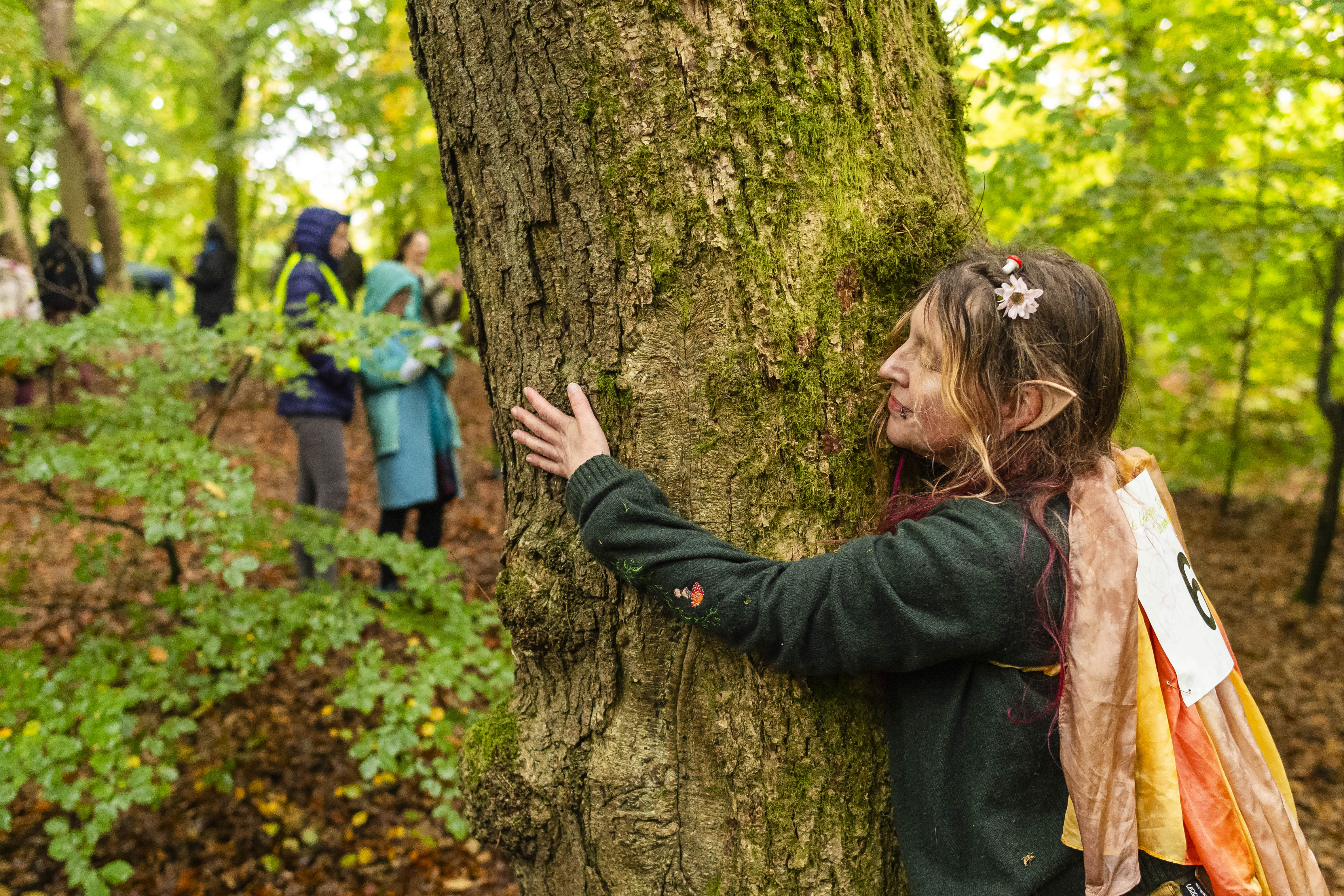 Speed hugging was among the categories at Glasgow’s first tree hugging tournament, in Dams to Darnley Country on October 6, 2024. Competitors had to hug as many trees as possible in one minute. (Photo by Euan Cherry for The Times)