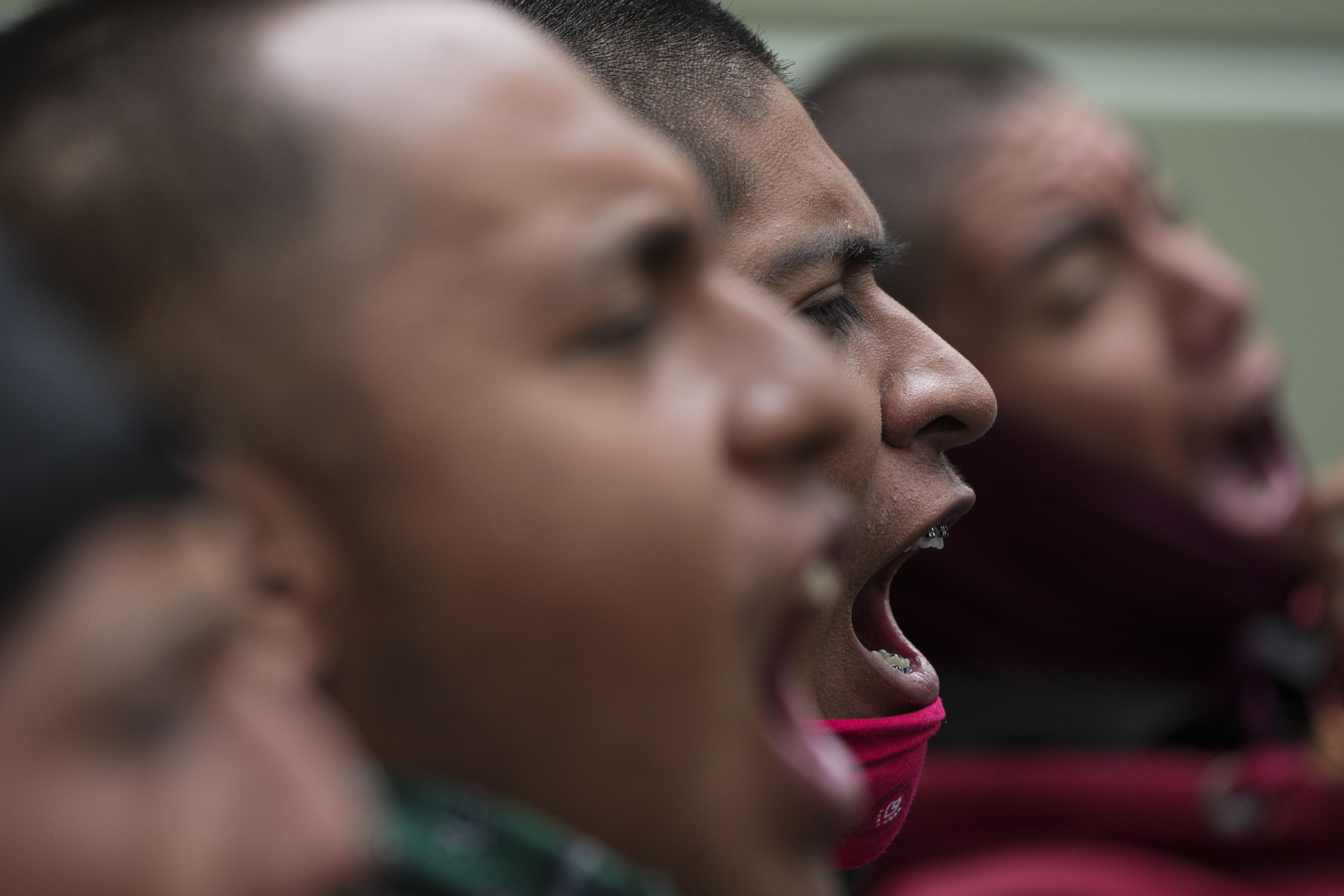 Students demonstrate ahead of the 10th anniversary of the disappearance of 43 Ayotzinapa students in Guerrero state, in Mexico City, September 24, 2024. (Photo by Fernando Llano/AP Photo)