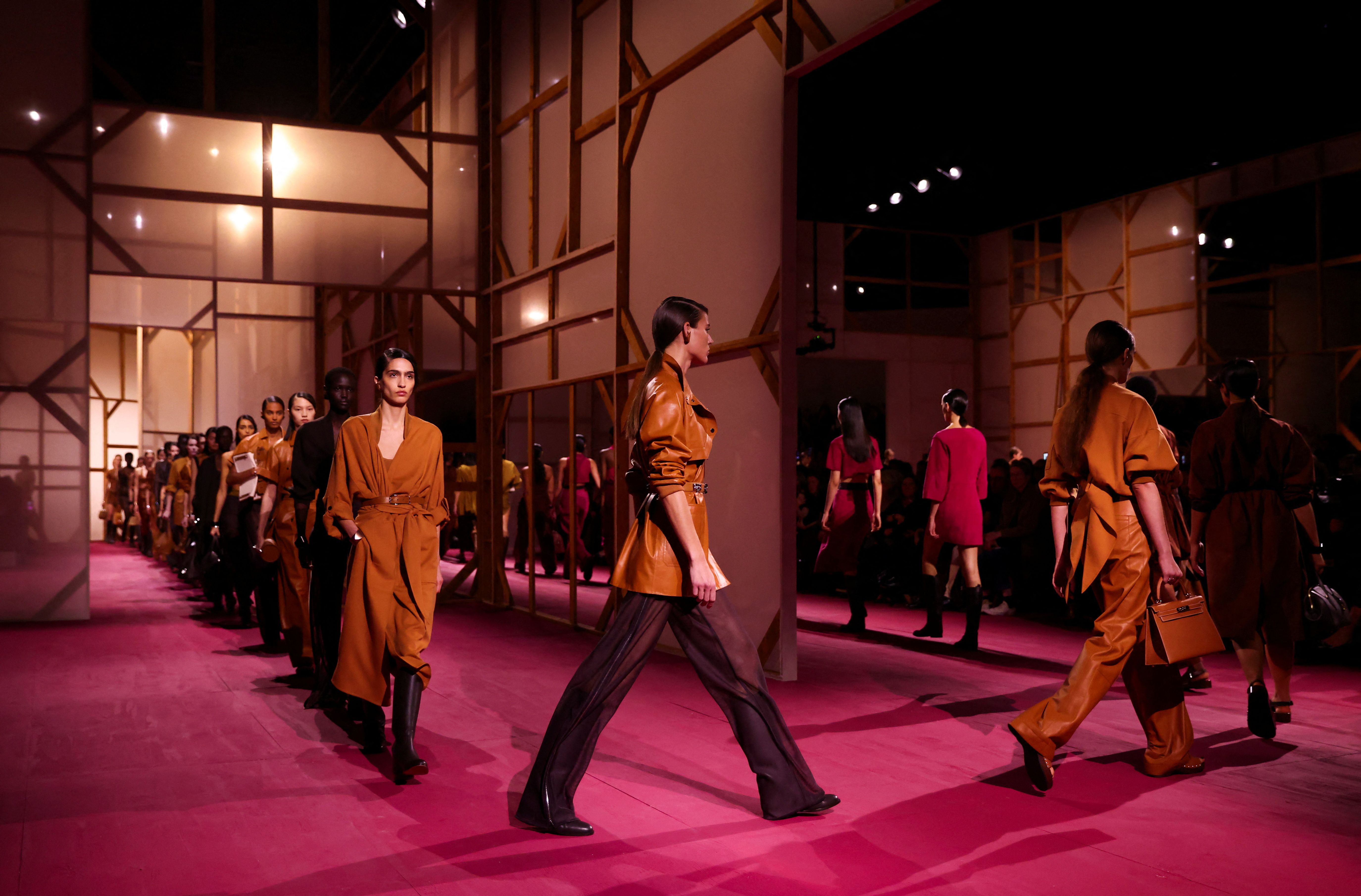 Model present creations by designer Veronique Nichanian as part of her Spring/Summer 2025 Women's ready-to-wear collection show for fashion house Hermes during Paris Fashion Week in Paris, France, on September 28, 2024. (Photo by Johanna Geron/Reuters)