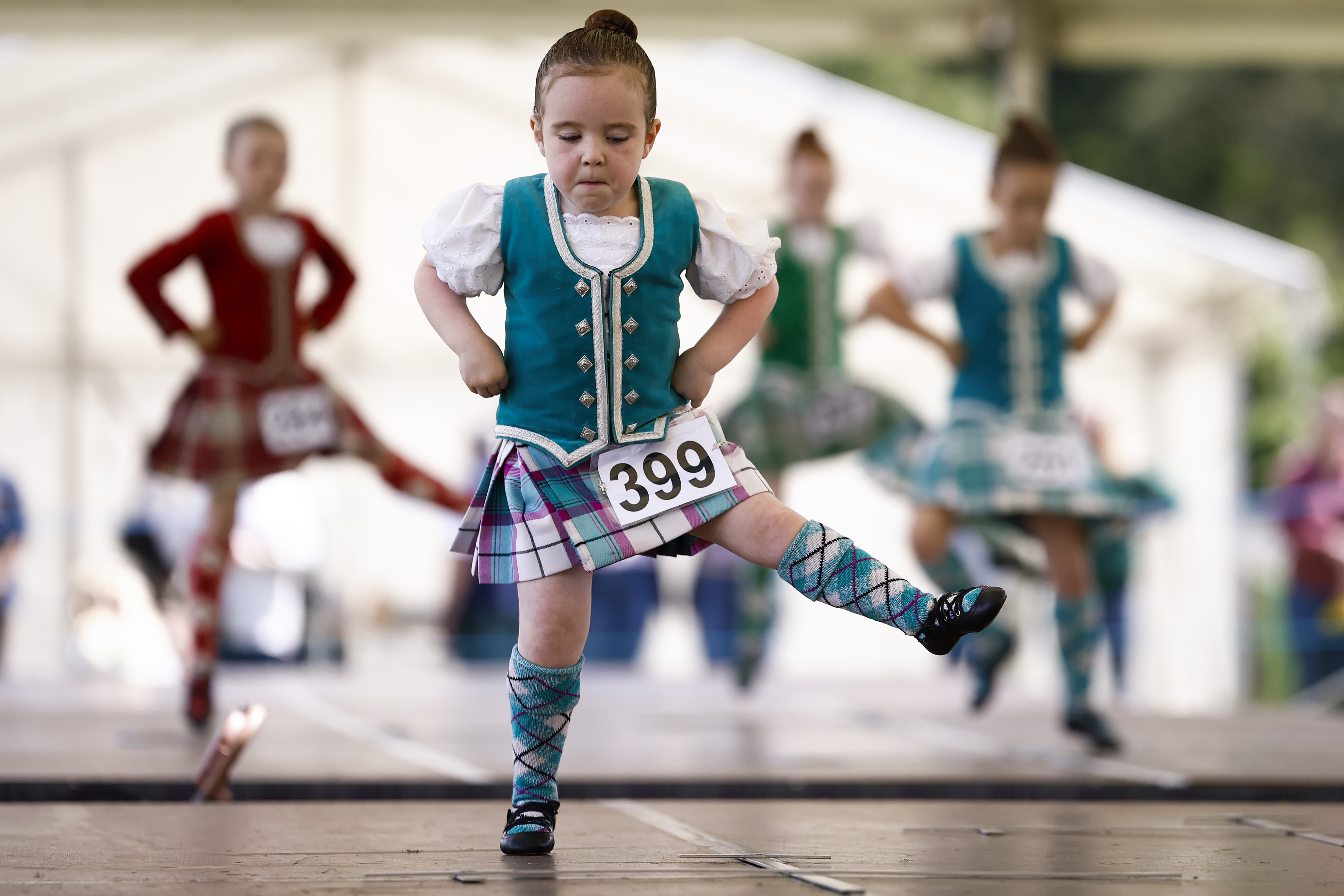 Dancers compete during the Inveraray Highland Games on July 18, 2023 in Inveraray, Scotland. The games held annually in the grounds of Inveraray Castle. They celebrate Scottish culture and heritage with field and track events, piping, highland dancing competitions and heavy events including the world championships for tossing the caber (Photo by Jeff J. Mitchell/Getty Images)