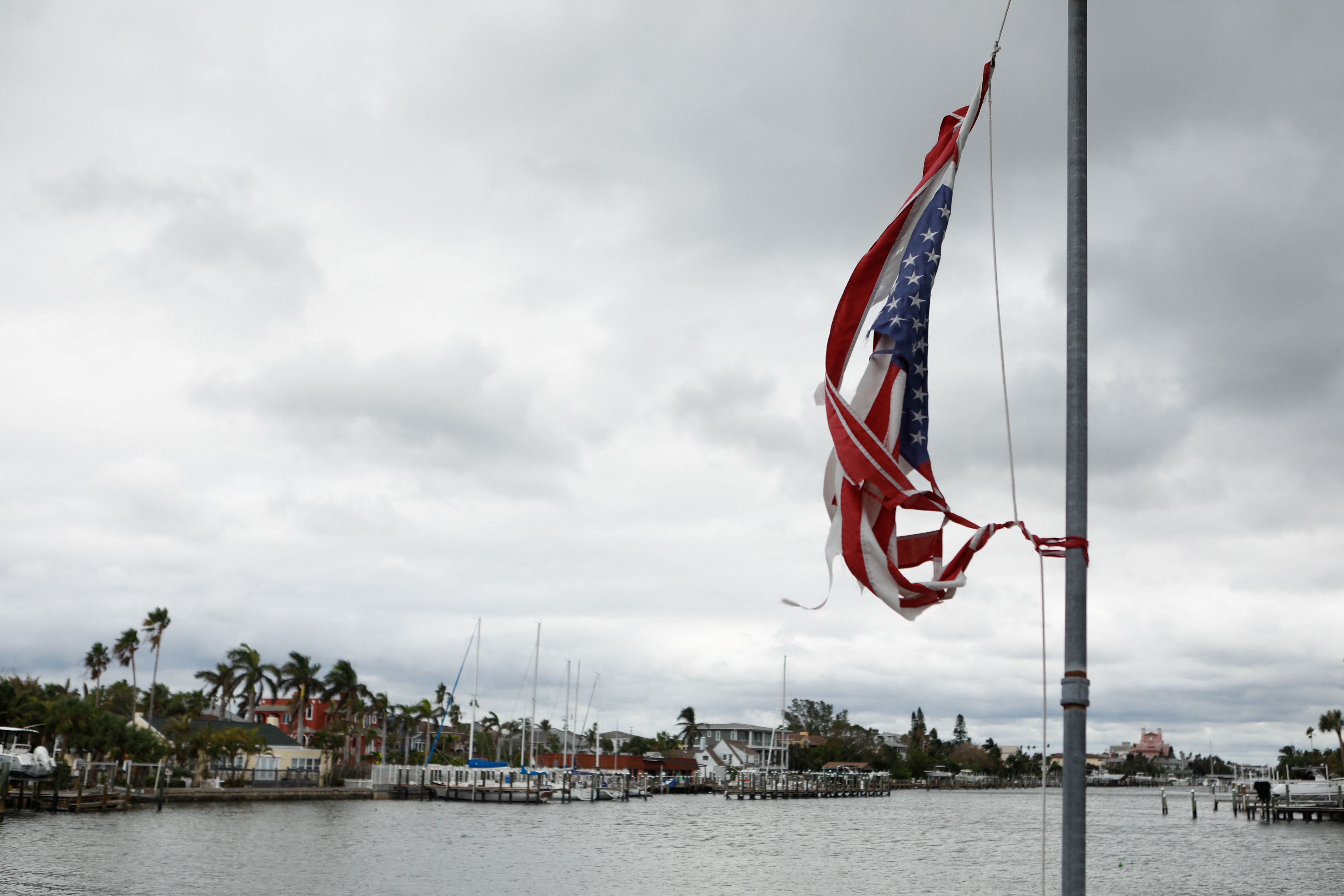 A torn American flag weaves in the aftermath of Hurricane Helene and before the arrival of Hurricane Milton, St. Pete Beach, Florida, U.S., October 7, 2024. (Photo by Octavio Jones/Reuters)