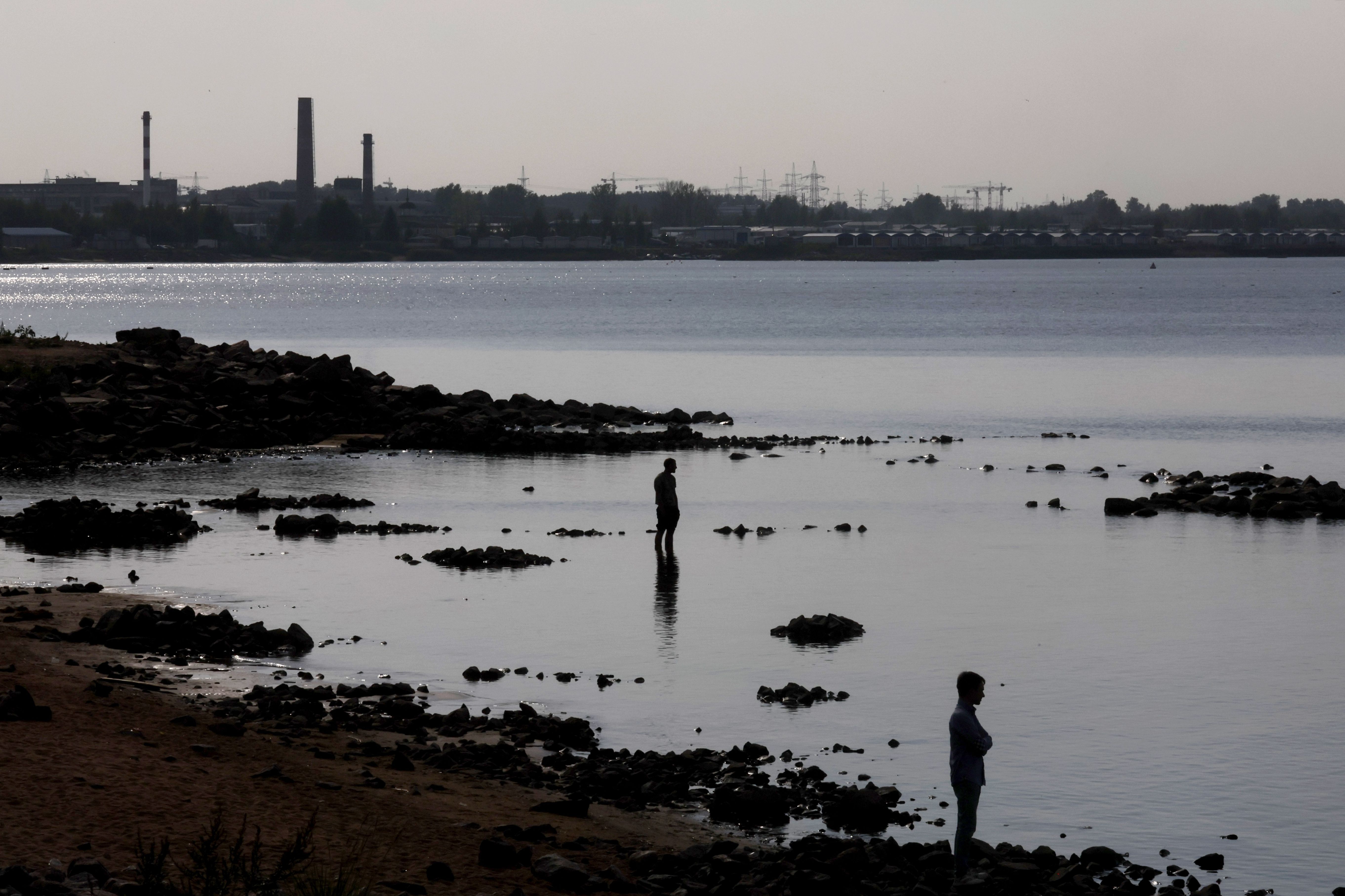 Men stand on the shore of the Gulf of Finland during warm weather in St. Petersburg, Russia, 11 September 2024. Temperatures in Russia's second-largest city reached up to 23 degrees Celsius. (Photo by Anatoly Maltsev/EPA/EFE)