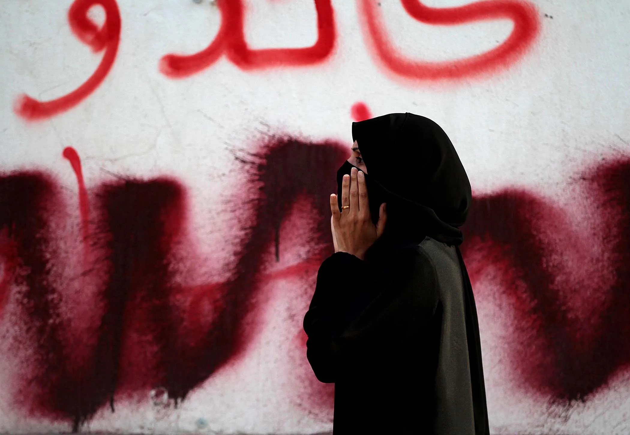 An anti-government protester standing in front of graffiti that has been partly painted over shouts toward police during clashes in Manama, Bahrain, March 2, 2013. Protesters tried to march on the country's heavily guarded main public hospital, saying they intended to retrieve the body of a protester who died last week. The body of Mahmoud al-Jazeeri, 20, has not yet been released for burial because of a dispute between the family and the government over funeral plans. (Photo by Hasan Jamali/Associated Press)