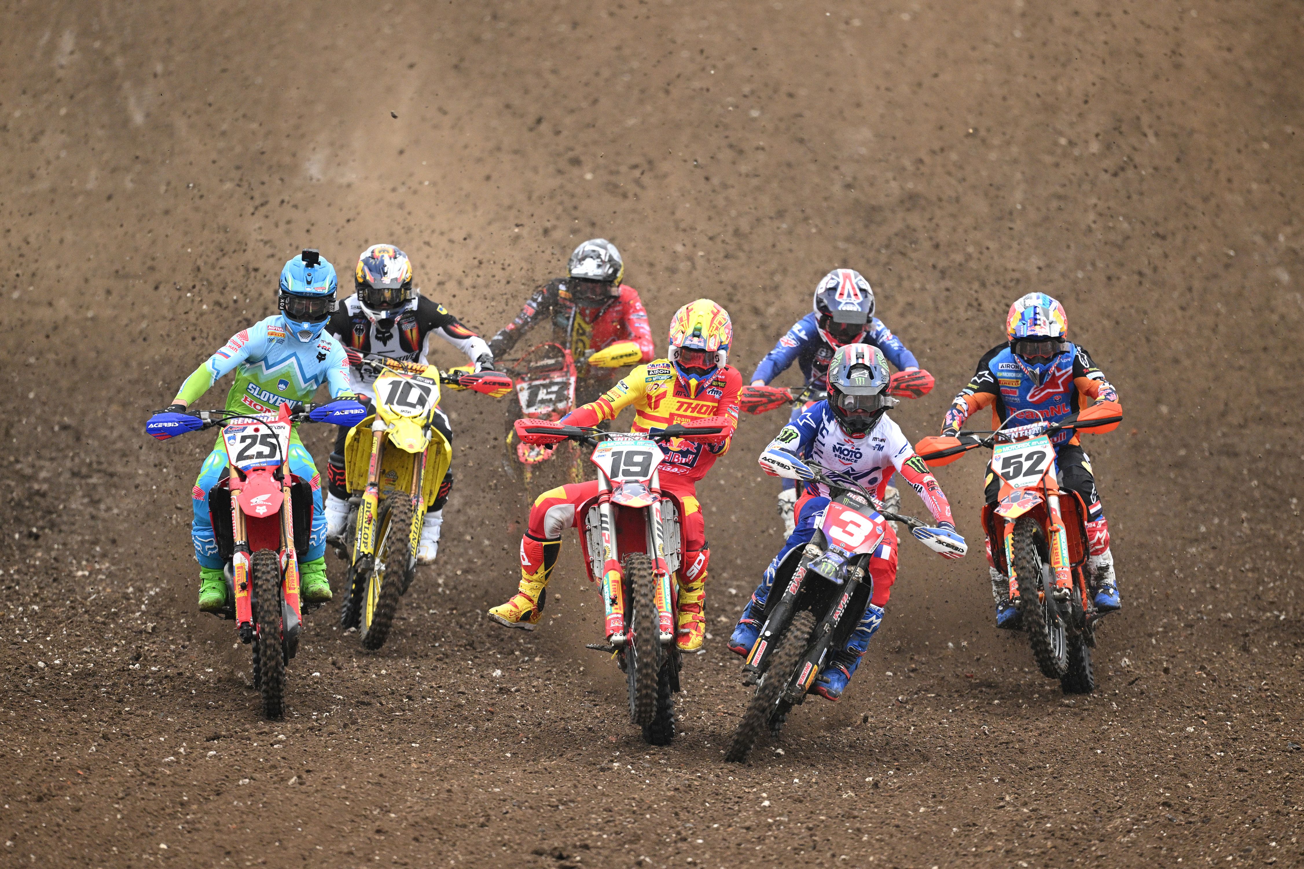 Riders take off from the start line during the 2024 Monster Energy Motocross Of Nations at Matterley Basin on October 06, 2024 in Winchester, England. (Photo by Justin Setterfield/Getty Images)