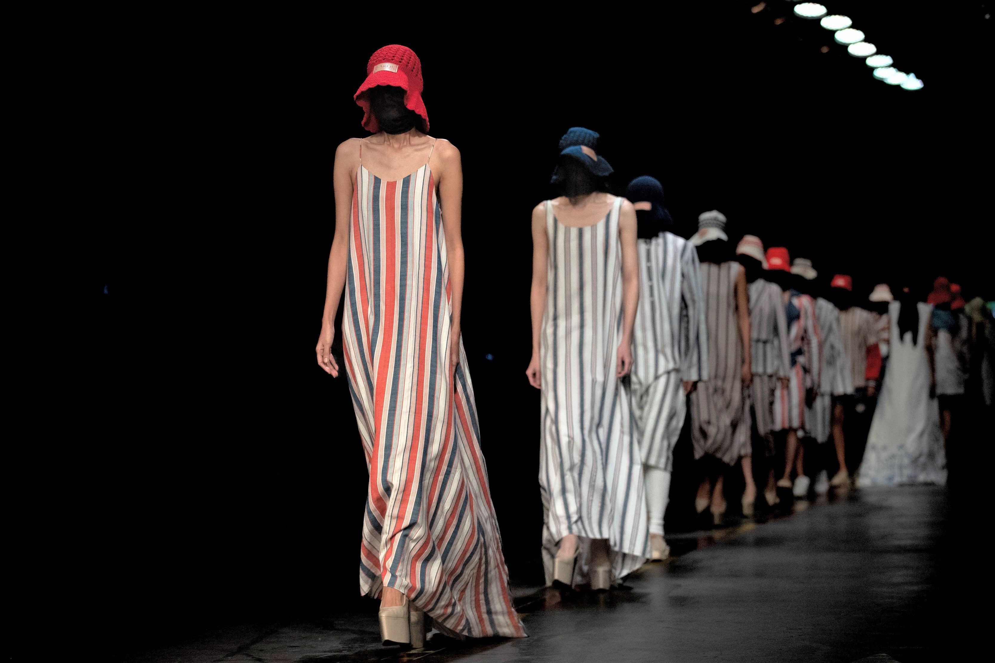 A model showcases designs by Irsan (Lakon Indonesia) in RIK 062324 L show during the JF3 Jakarta Fashion Festival at MKG Empower Hall Summarecon Mall Kelapa Gading on July 26, 2023 in Jakarta, Indonesia. (Photo by Robertus Pudyanto/Getty Images)