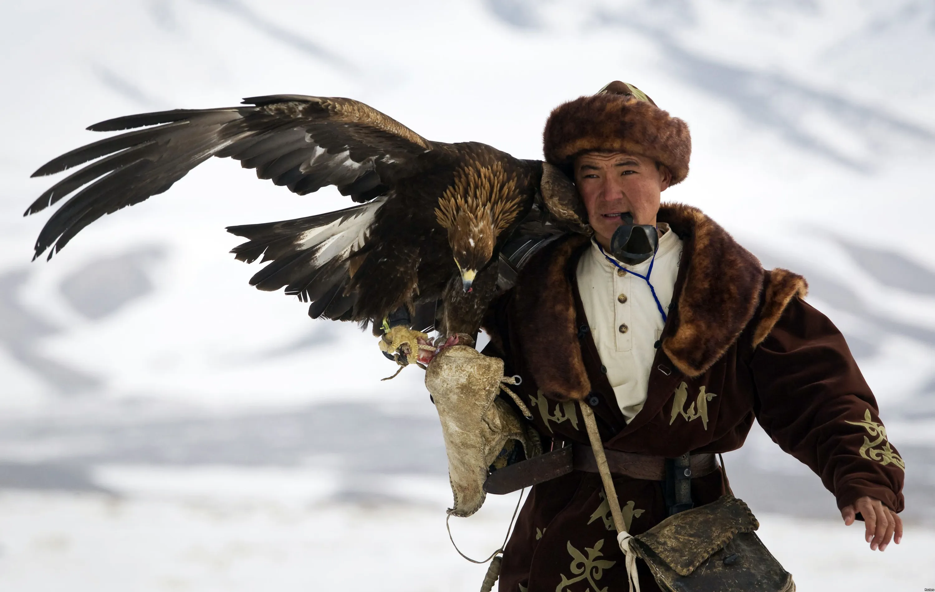 A Kazakh hunter walks with his tamed golden eagle during an annual hunting competition in Chengelsy Gorge, some 150 km (93 miles) east of Almaty February 22, 2013. (Photo by Shamil Zhumatov/Reuters)