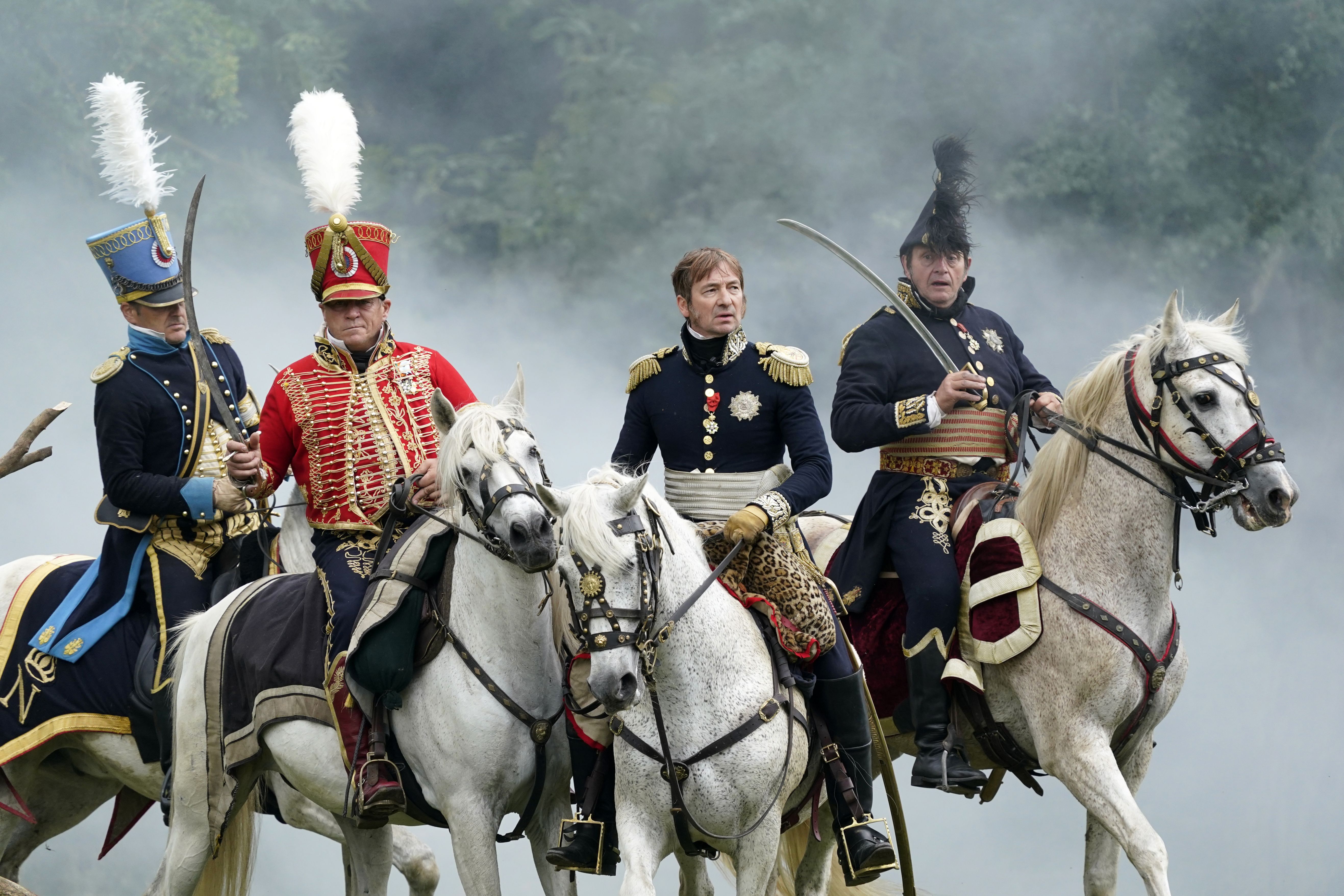 Reenactors take part during the Battle of Waterloo Reenactment on July 02, 2023 in Waterloo, Belgium. The 1815 battle marked the end of the Napoleonic Wars, when a British-led coalition under the command of the Duke of Wellington defeated the French army under the command of Napoleon Bonaparte. (Photo by Pier Marco Tacca/Getty Images)