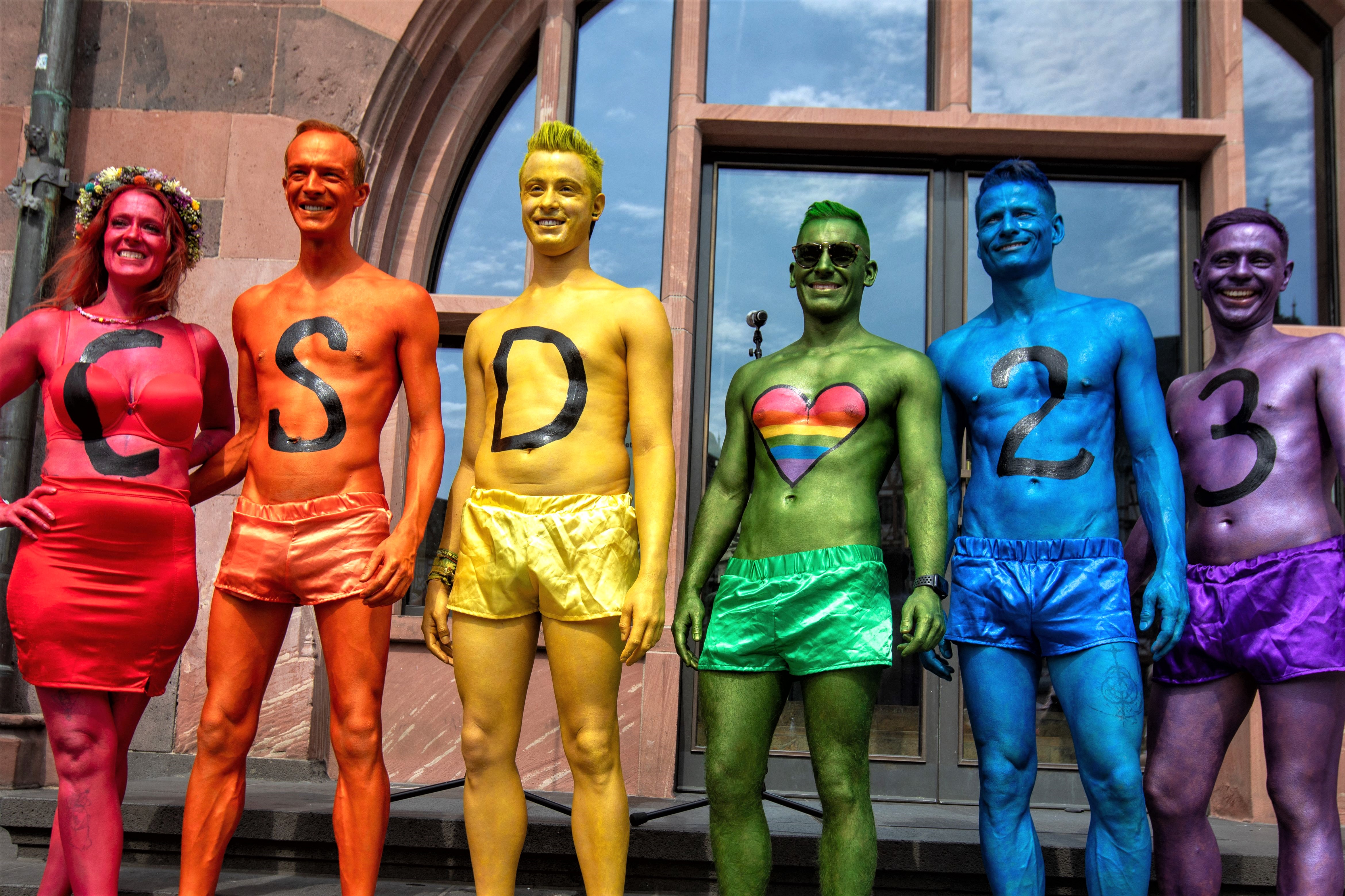 Participants in the Christopher Street Day (CSD) LGBTQ+ street parade pose for a photo in Frankfurt am Main, western Germany, on July 15, 2023. (Photo by Andre Pain/AFP Photo)