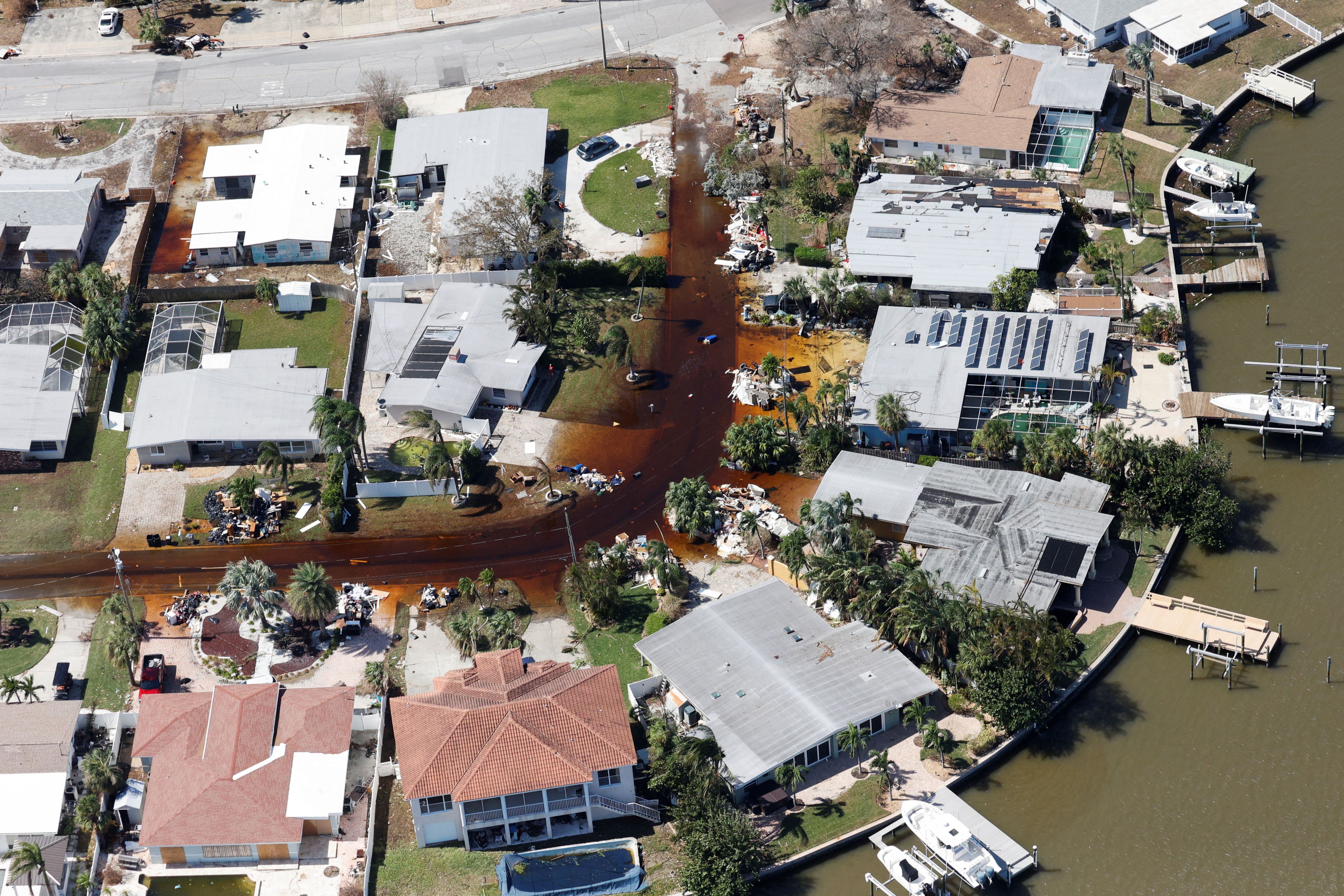 An aerial view shows debris on a street, in the aftermath of Hurricane Milton, in St. Pete Beach, Florida, on October 10, 2024. (Photo by Marco Bello/Reuters)
