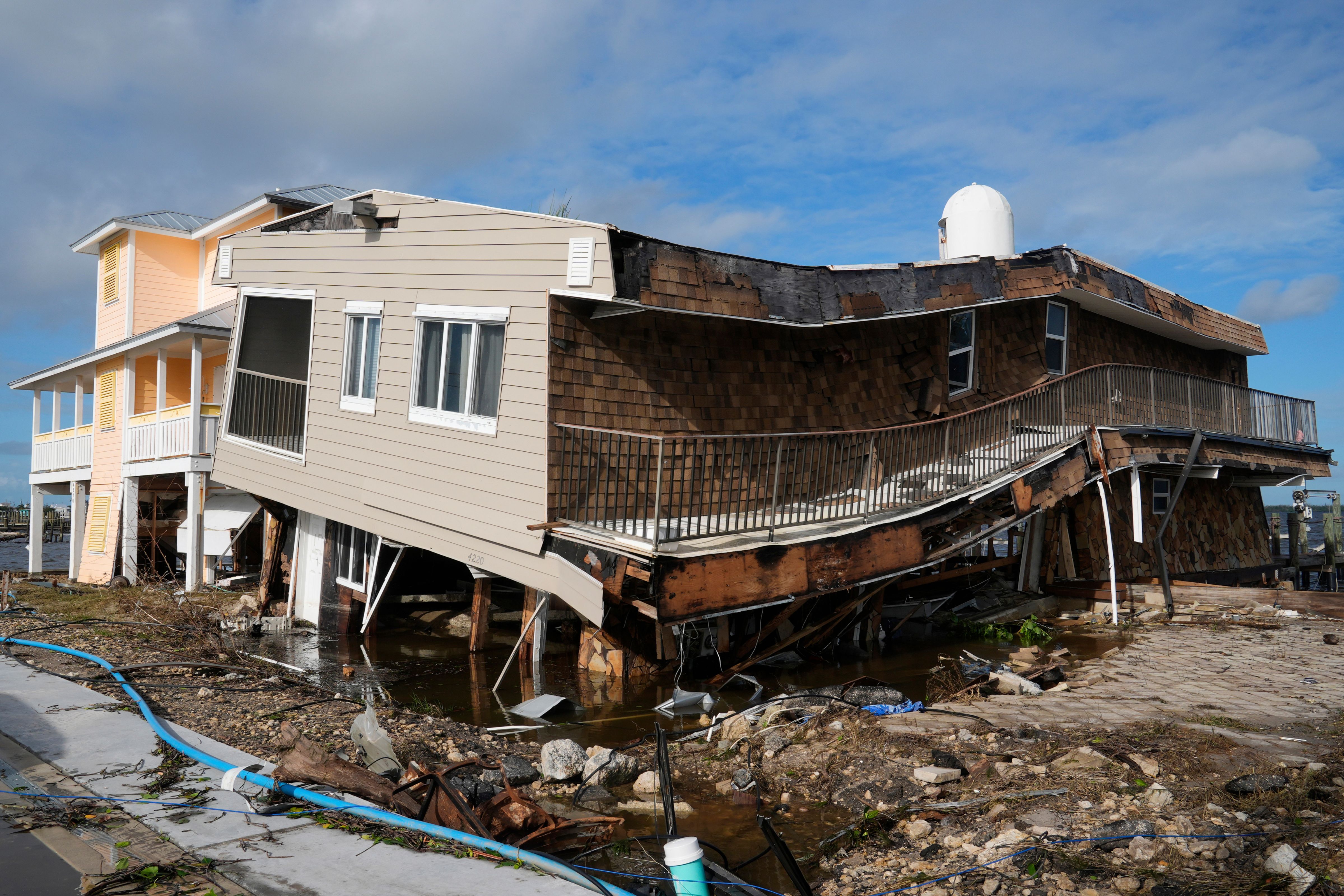 Houses lie in ruins after sustaining tornado and flood damage from Hurricane Milton, Thursday, October 10, 2024, in Matlacha, Fla. (Photo by Marta Lavandier/AP Photo)