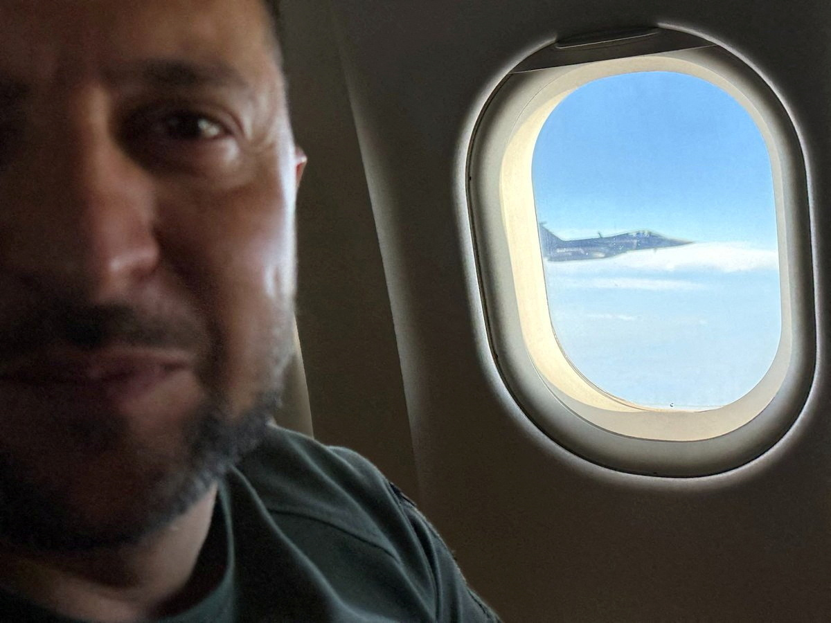 Ukraine's President Volodymyr Zelenskiy travels on board a Czech Airbus, on July 6, 2023, in this handout picture. (Photo by Tomas Pojar/Czech Armed Forces/Handout via Reuters)