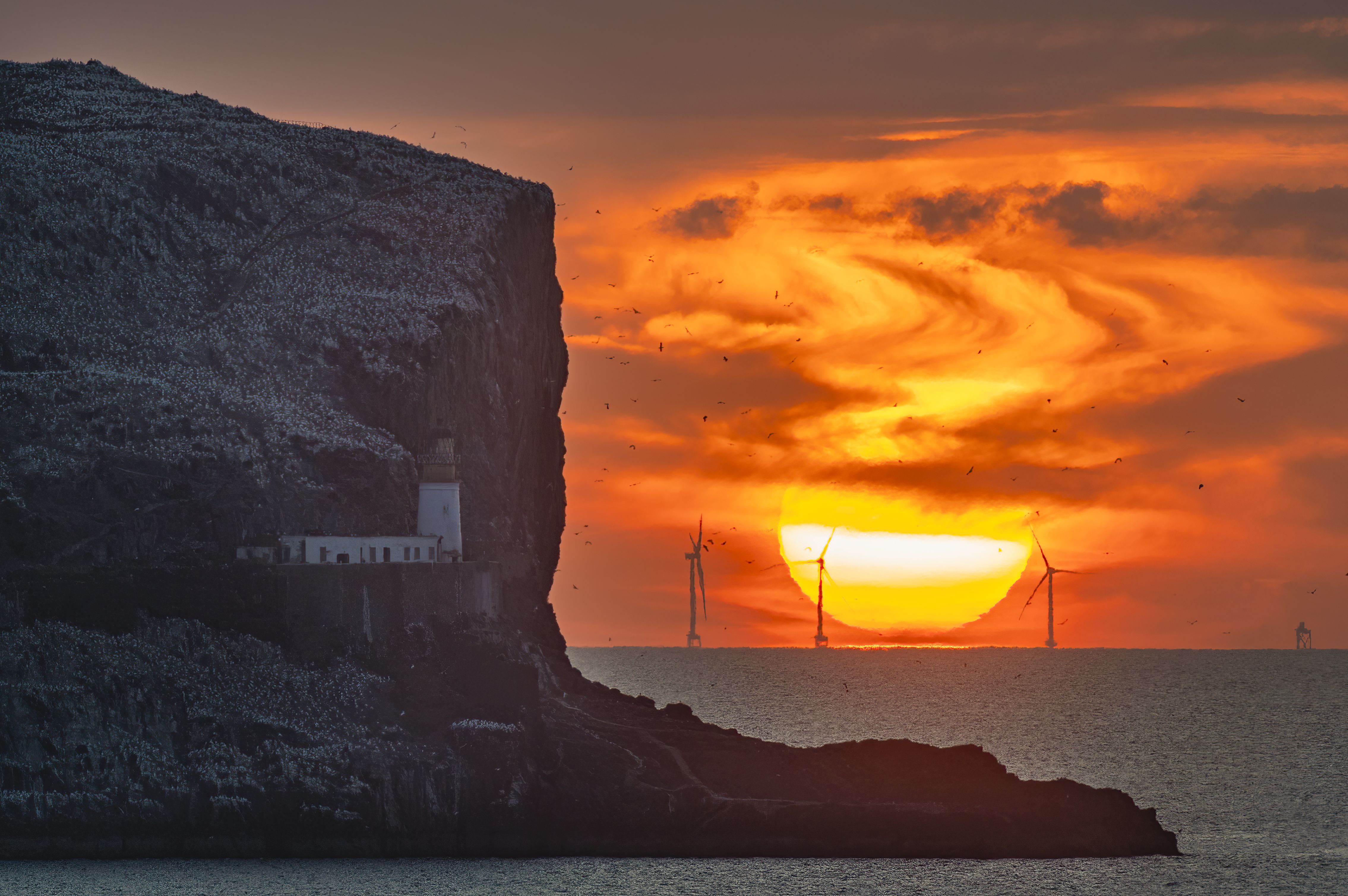 The sun rises behind the island of Bass Rock in the Firth of Forth, United Kingdom on July 31, 2024. (Photo by Euan Cherry/The Times)