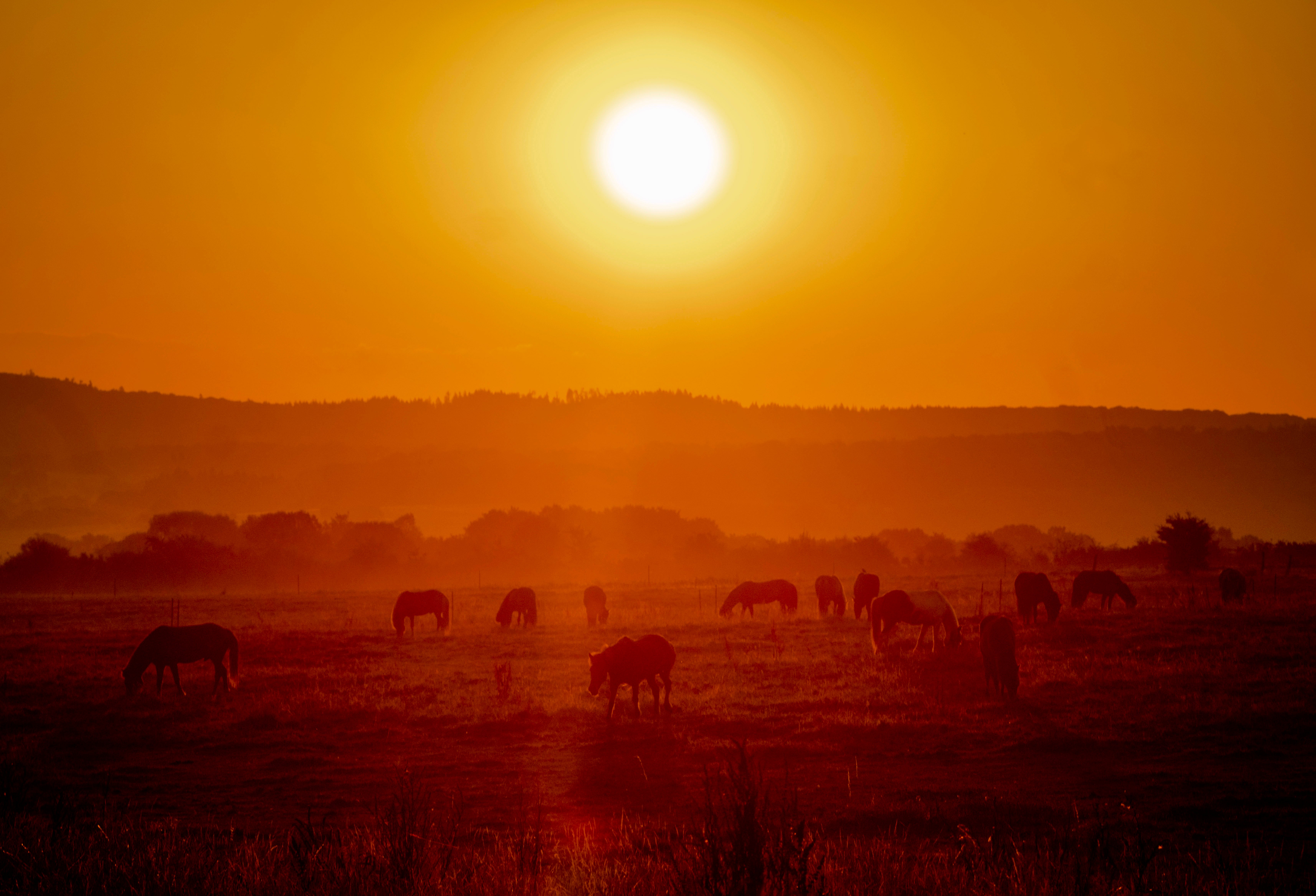 Icelandic horses graze in a meadow at a stud farm in Wehrheim, Germany, at sunrise, Tuesday, August 13, 2024. (Photo by Michael Probst/AP Photo)