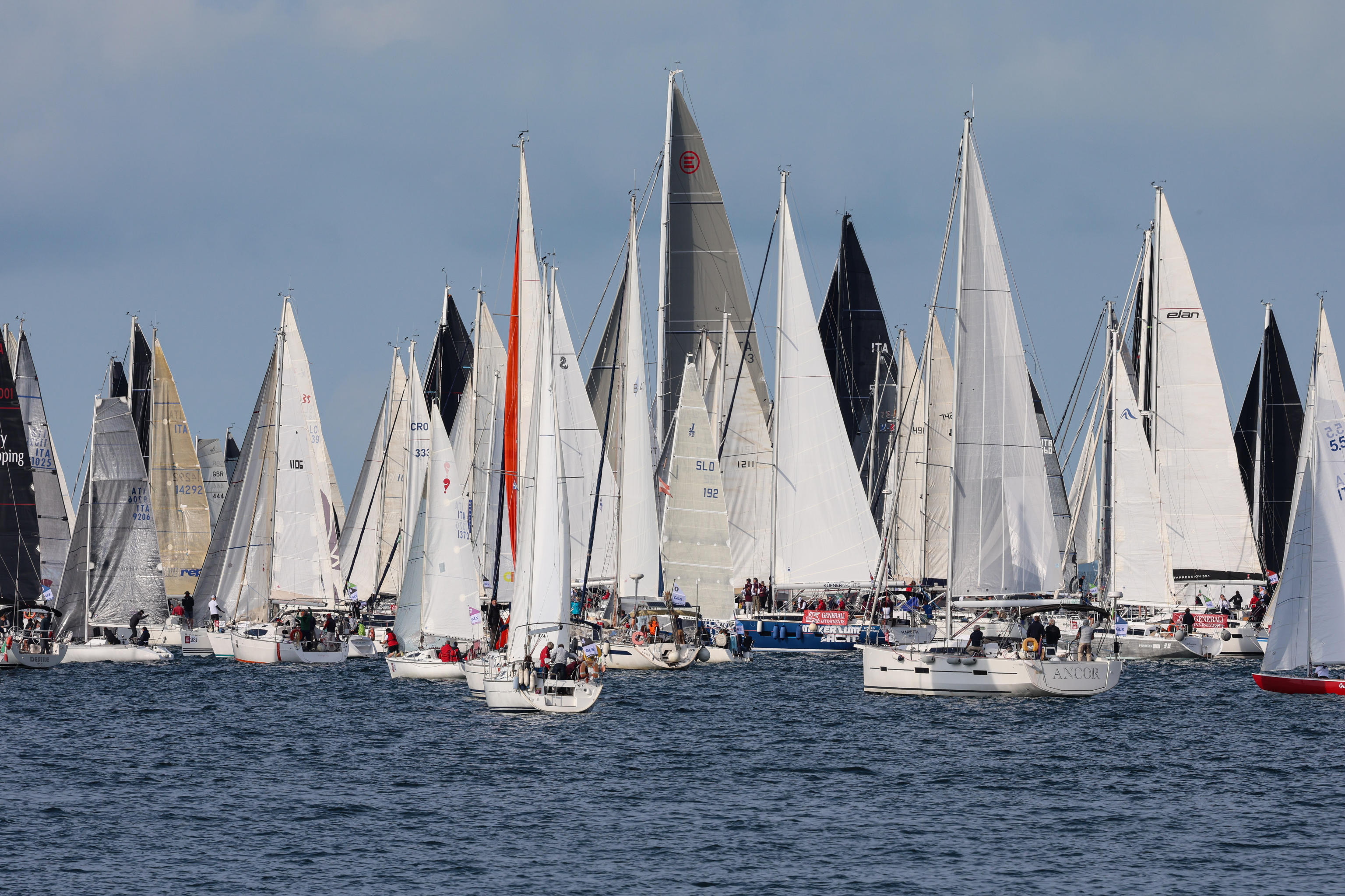 The start of Barcolana number 56, the largest regatta in the world taking place since 1969, with 1,757 boats registered in this year's event, in Trieste, Italy, 13 October 2024. (Photo by Gabriele Cozzoli/EPA)