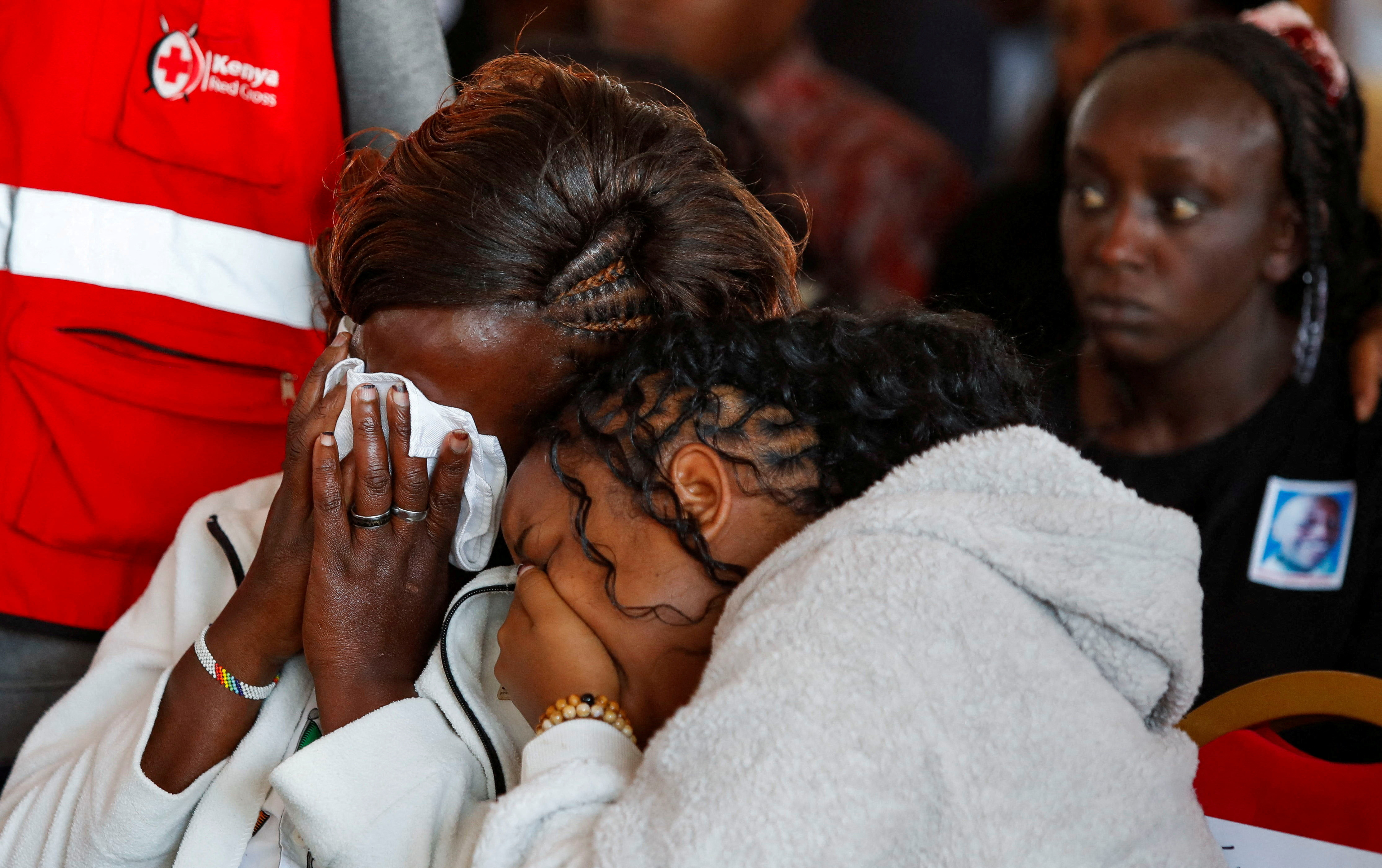 Mourners react as they attend a memorial service for the pupils who died after a fatal fire at the Hillside Endarasha Academy within Kieni in Nyeri County, Kenya on September 26, 2024. (Photo by Monicah Mwangi/Reuters)