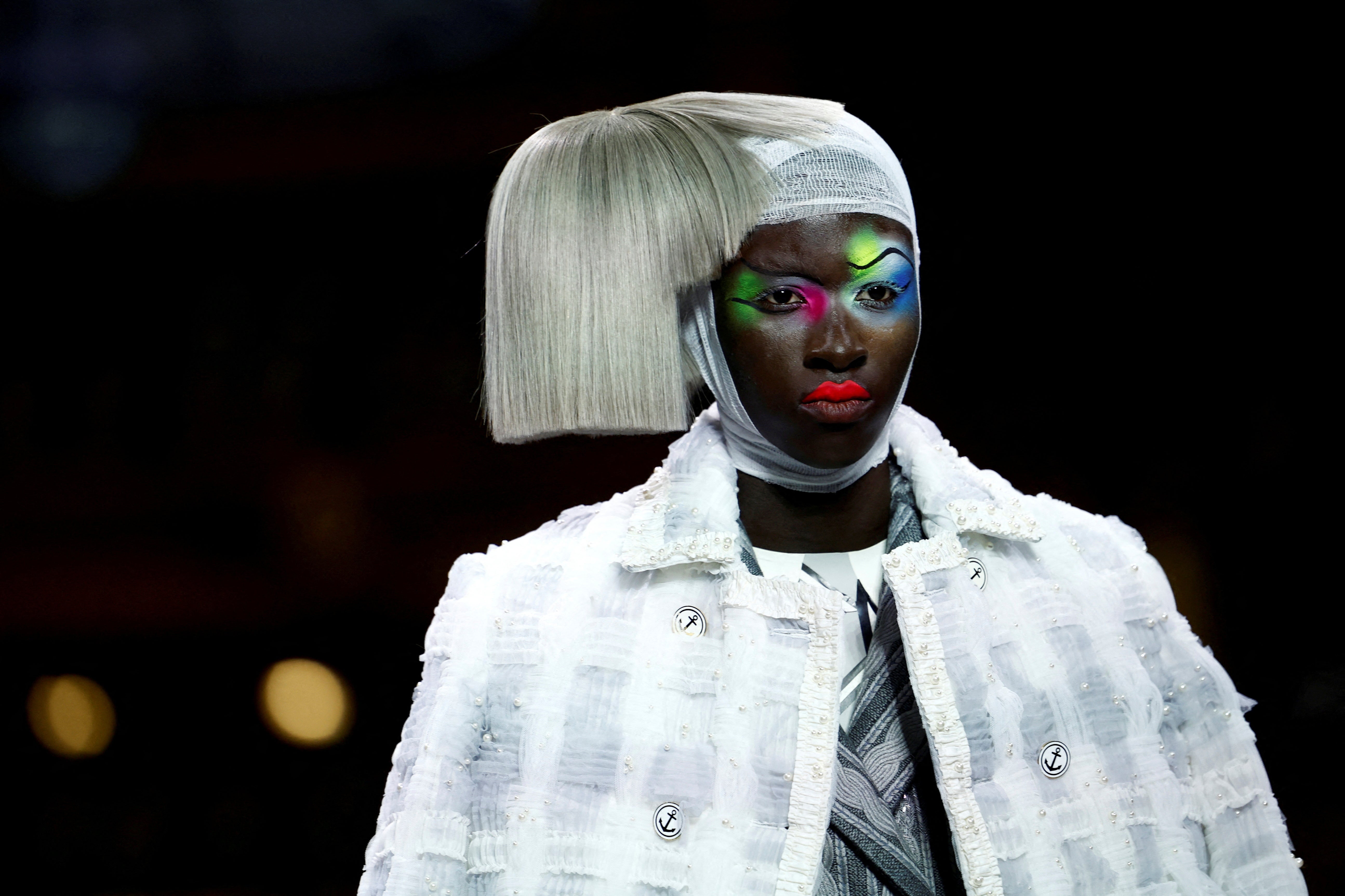 A model presents a creation by designer Thom Browne as part of his Haute Couture Fall/Winter 2023-2024 collection show at the Opera Garnier in Paris, France on July 3, 2023. (Photo by Sarah Meyssonnier/Reuters)