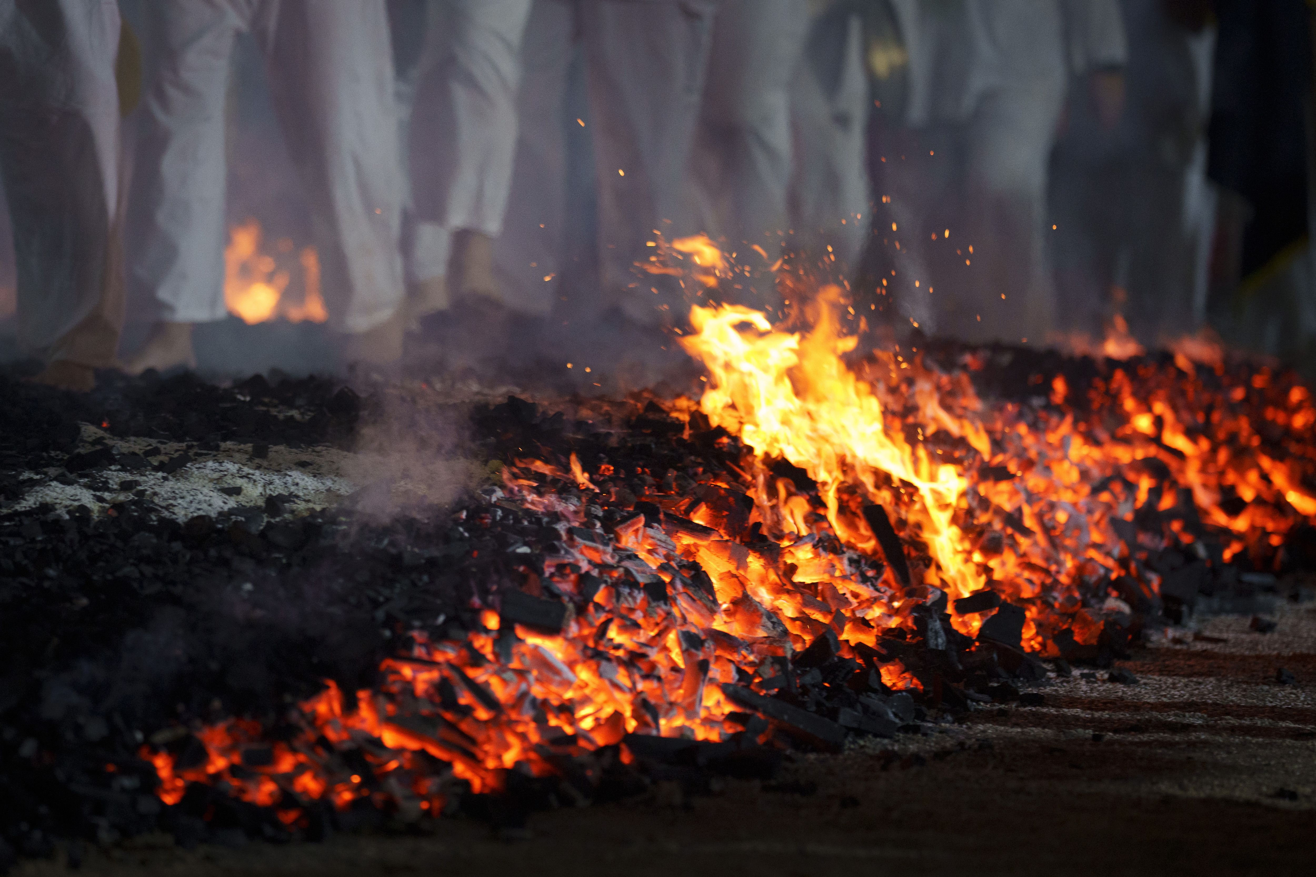 Malaysian Chinese devotees walk barefoot over burning coals during the Nine Emperor Gods festival at a temple in Kuala Lumpur, Malaysia, Friday, October 11, 2024. (Photo by Vincent Thian/AP Photo)