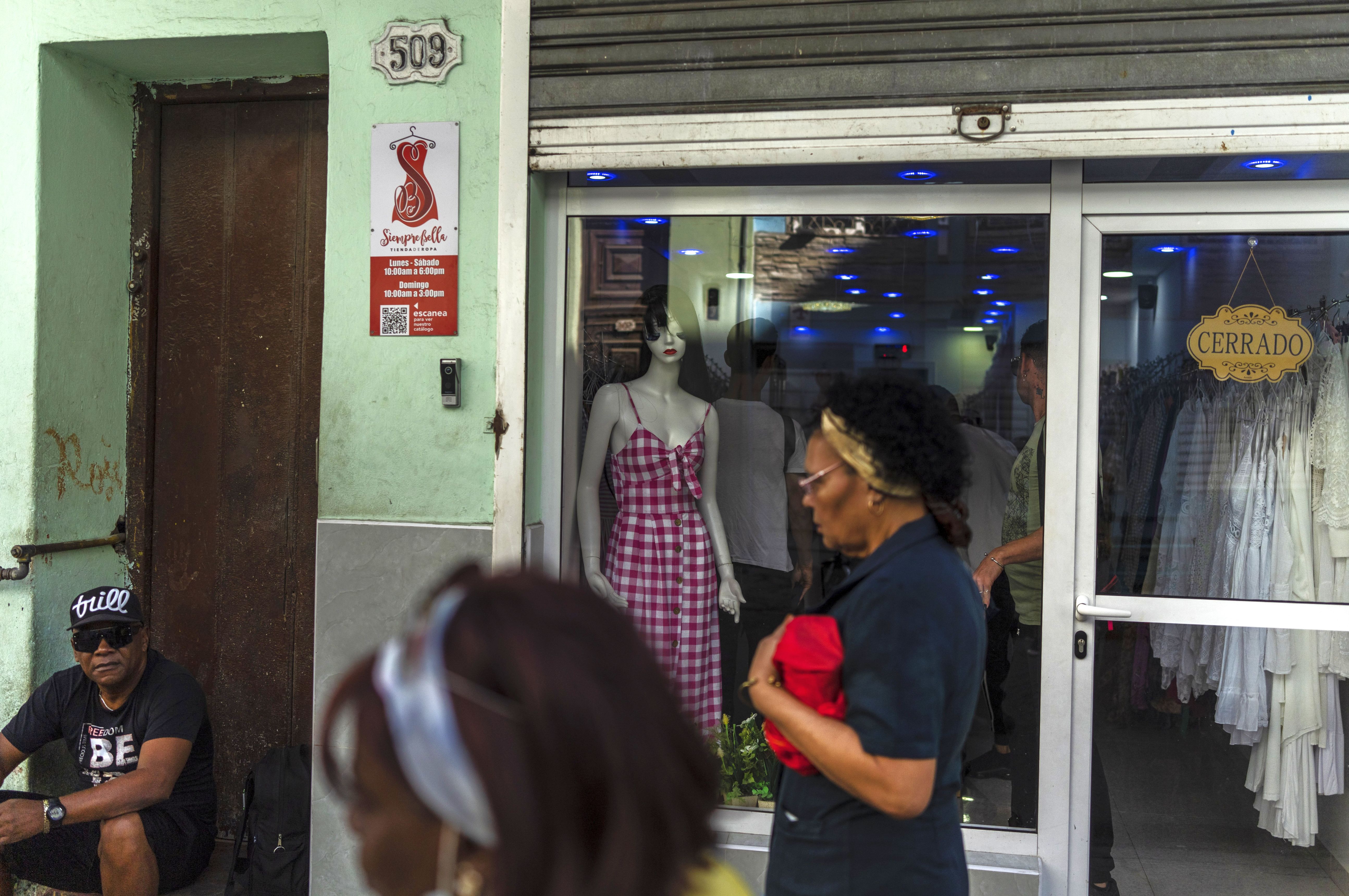 Residents walk past a closed, private clothing store in Havana, Cuba, Saturday, November 11, 2023. (Photo by Ramon Espinosa/AP Photo)