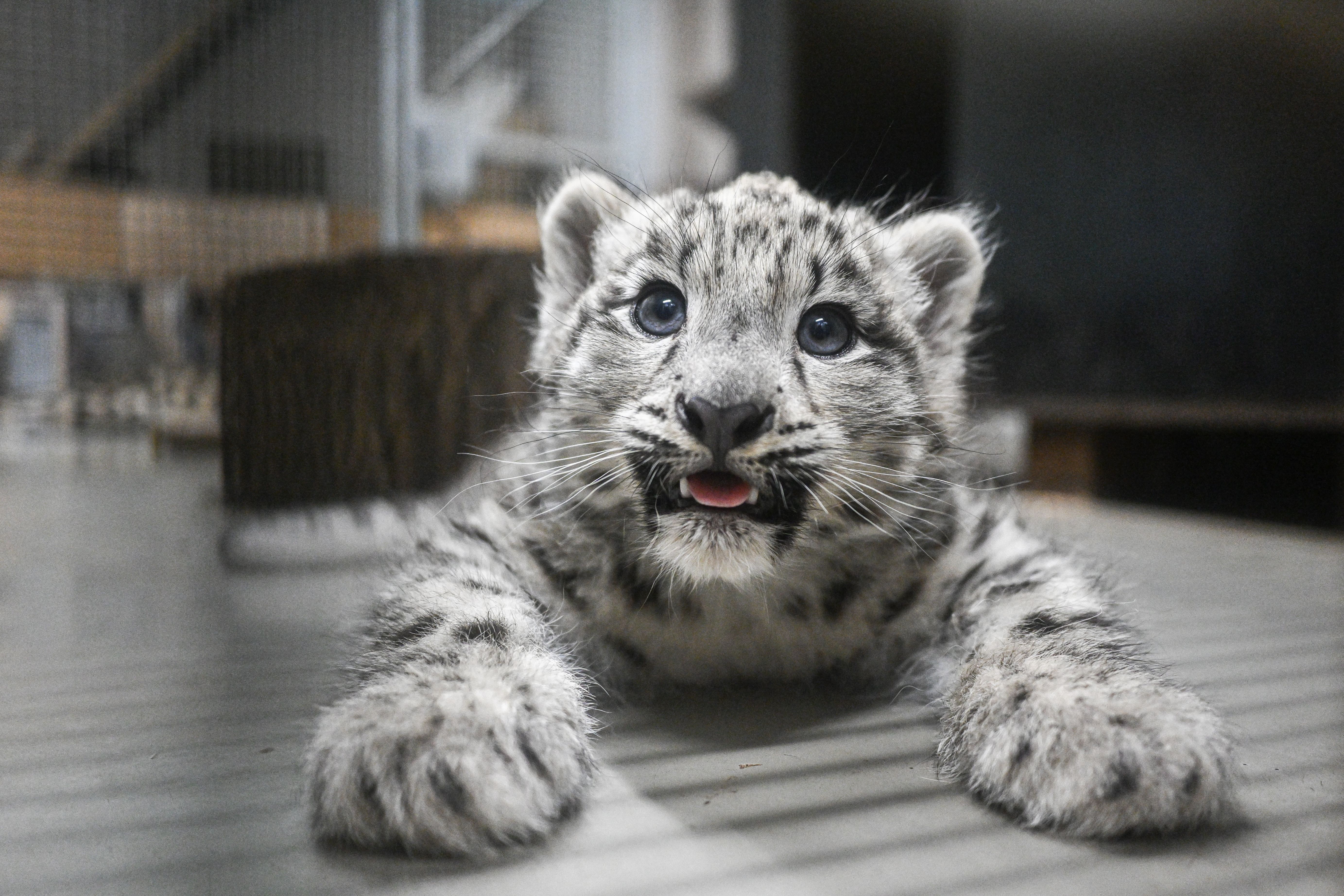 A vulnerable newborn snow leopard, 2-months-old, plays with her sister and their mother Natasja, 7-years-old, in their enclosure at Wroclaw Zoo, Wroclaw, Poland on July 24, 2023. It is estimated that the global population of snow leopards is about 4-7 thousand individuals, and has declined by at least 20% over the past two decades due to habitat loss, loss of food base, poaching and persecution. The species was listed as in dangerous, but to the education and breeding programs by zoos, it is now listed as vulnerable. (Photo by Omar Marques/Anadolu Agency via Getty Images)