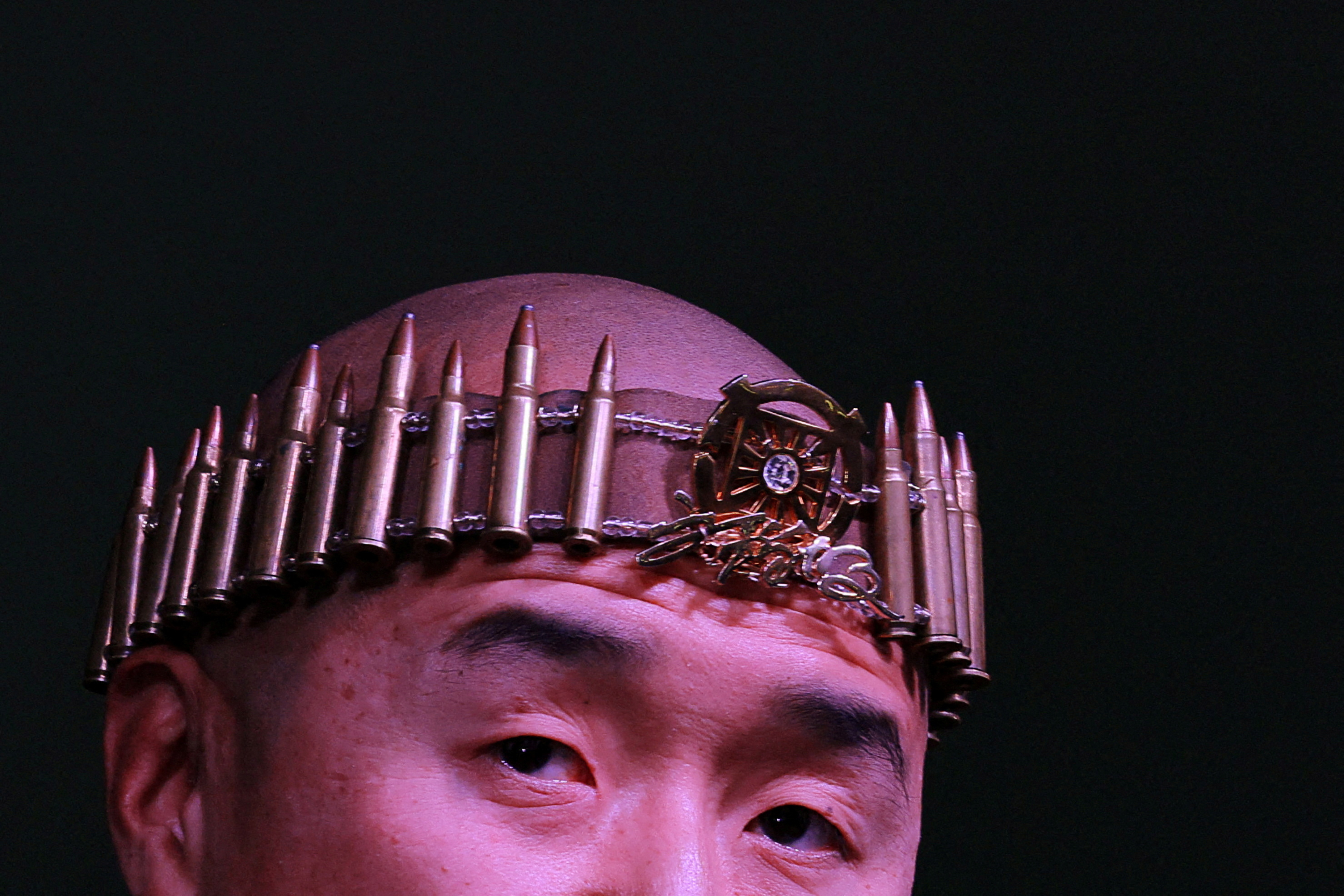 Pastor H. J. Sean Moon, of the World Peace and Unification Sanctuary Church, speaks at the Rod of Iron Freedom Festival, which the organizers call “the largest open carry rally in America”," in Greeley, Pennsylvania, U.S., October 13, 2024. (Photo by Brian Snyder/Reuters)