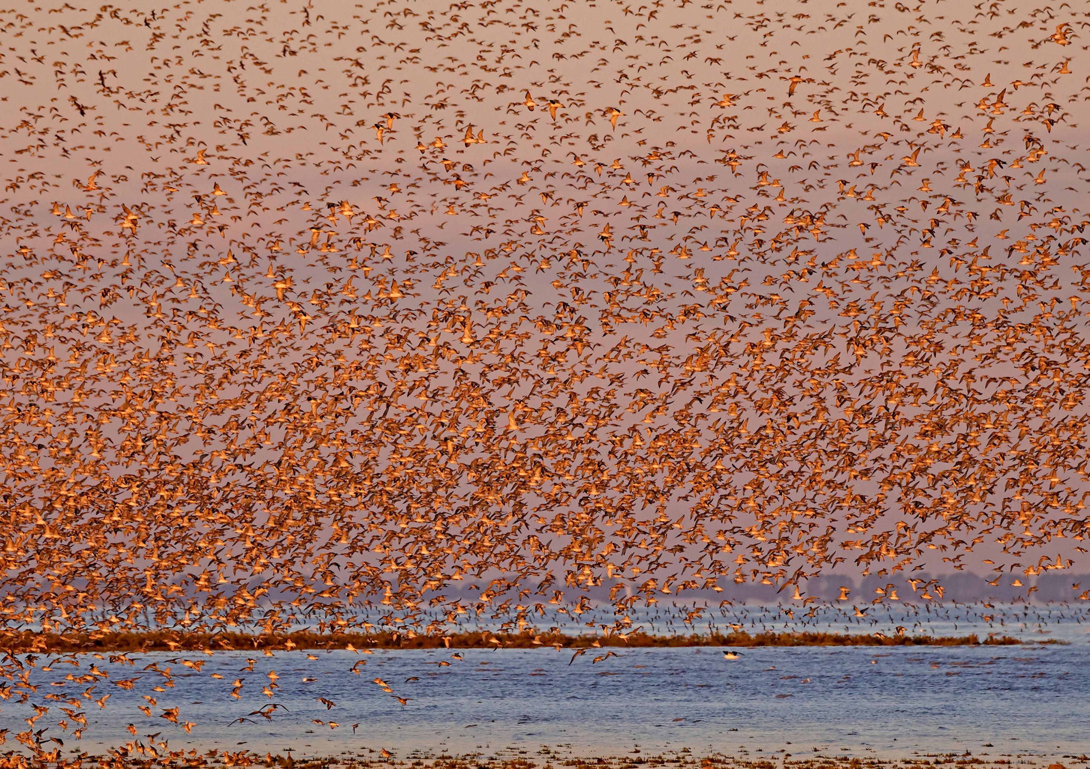 Tens of thousands of birds flock together at Snettisham Nature Reserve, Norfolk in the first decade of October 2024, to avoid becoming a peregrine’s breakfast. (Photo by Lester Bunyan/Solent News)