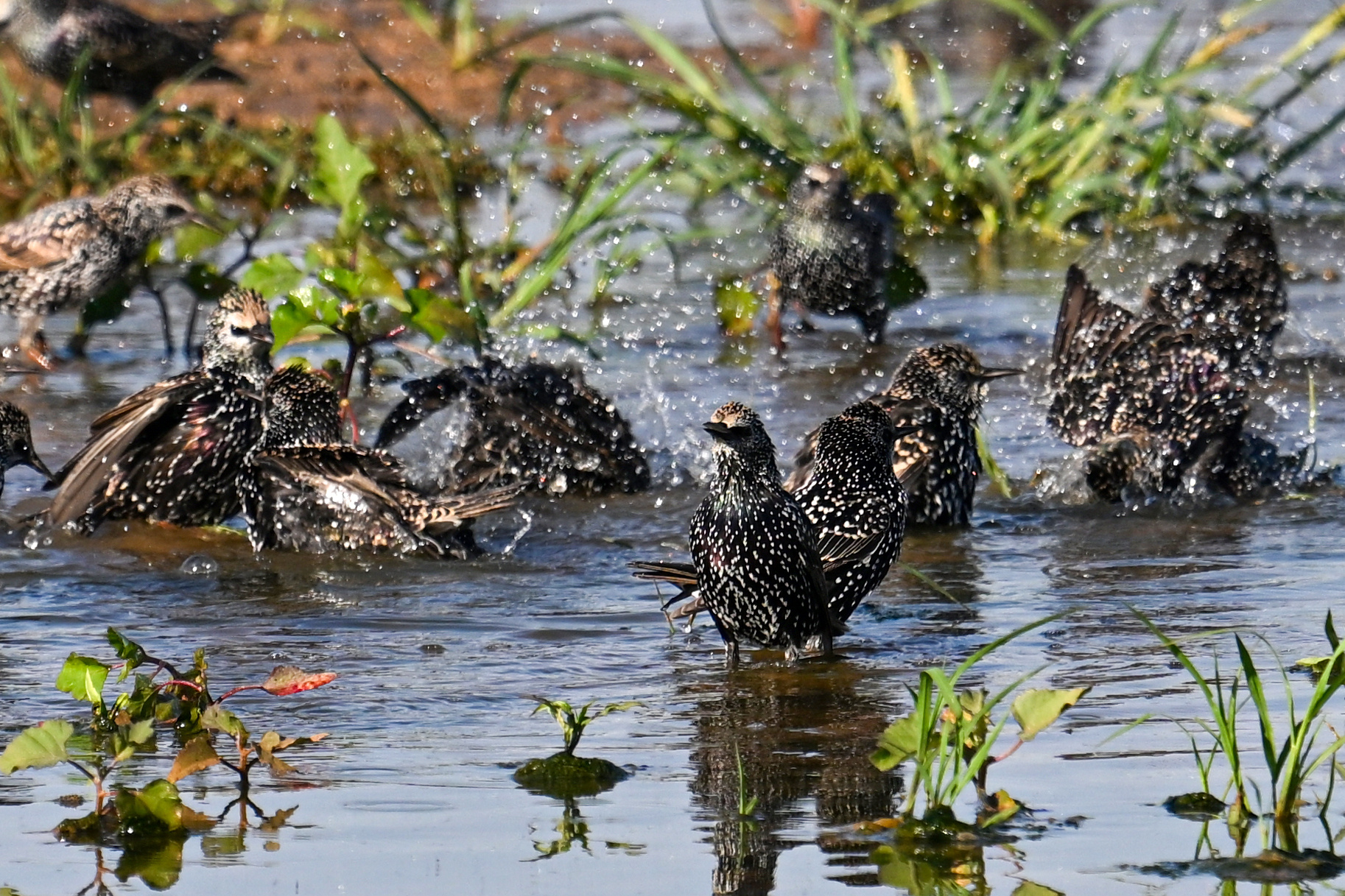 Starlings (Sturnidae) are seen near Doganpinar Dam as migratory birds congregate in the wetlands during seasonal changes in Oguzeli district of Gaziantep, Turkiye on October 05, 2024. (Photo by Adsiz Gunebakan/Anadolu via Getty Images)
