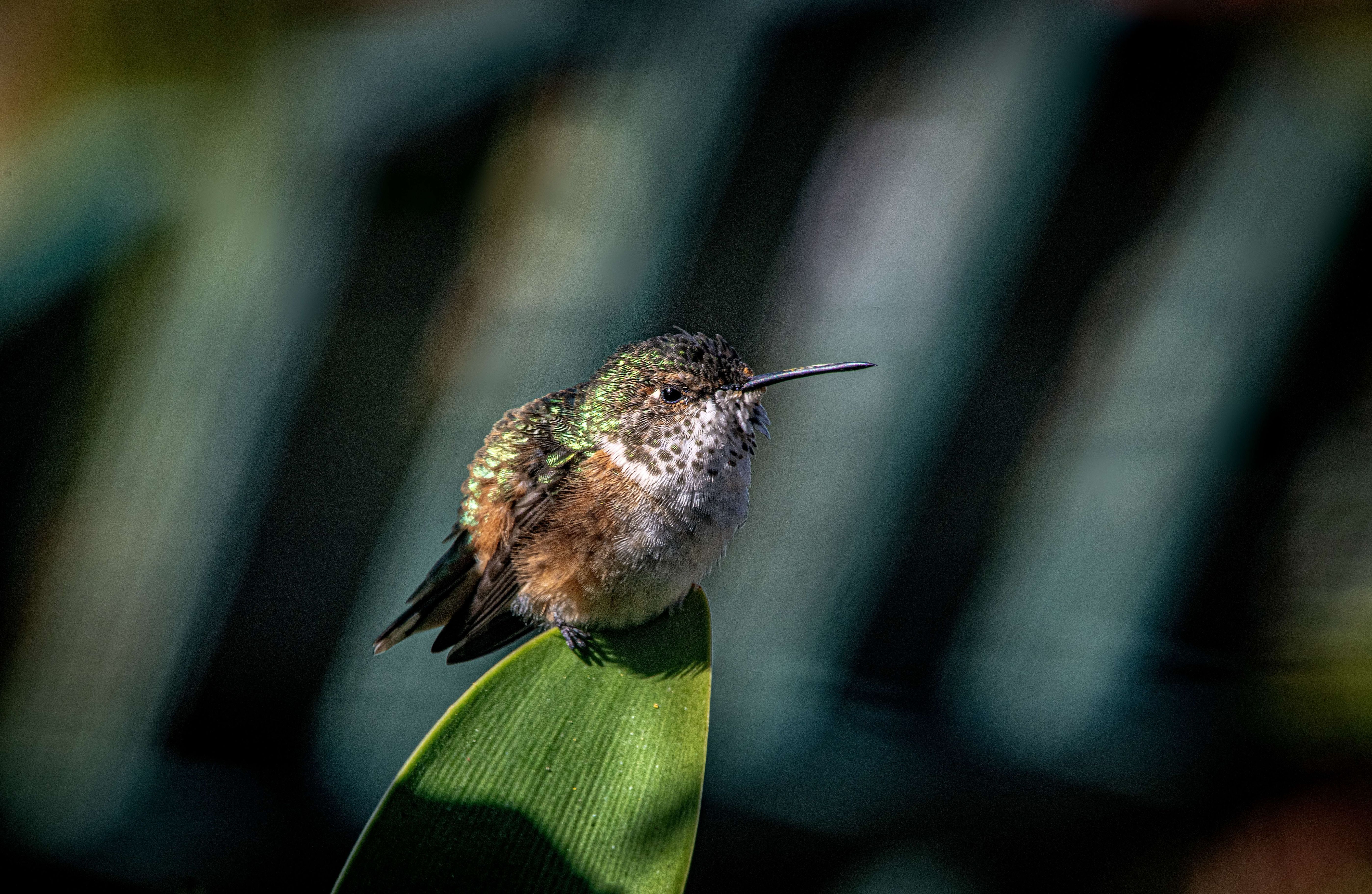 A female Allen's hummingbird rests atop the leaf of an amaryllis plant in a suburban garden of Orange County, California on October 14, 2024. (Photo by Bruce Chambers/ZUMA Press Wire/Rex Features/Shutterstock)