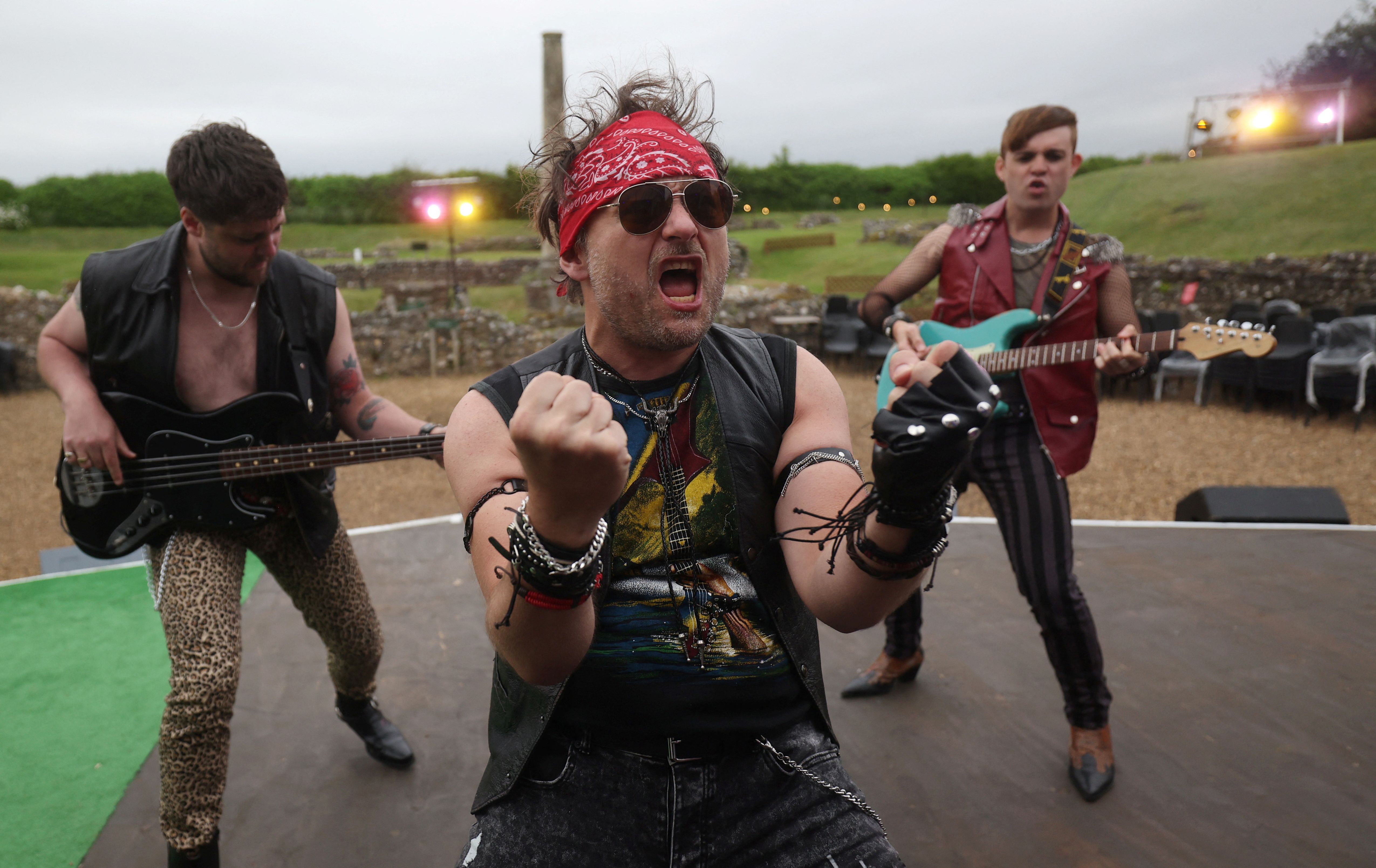 Cast members rehearse for a production of Shakespeare’s “Merry Wives of Windsor”, set in the 1980s, at The Roman Theatre of St Albans, Britain, on May 31, 2024. (Photo by Suzanne Plunkett/Reuters)