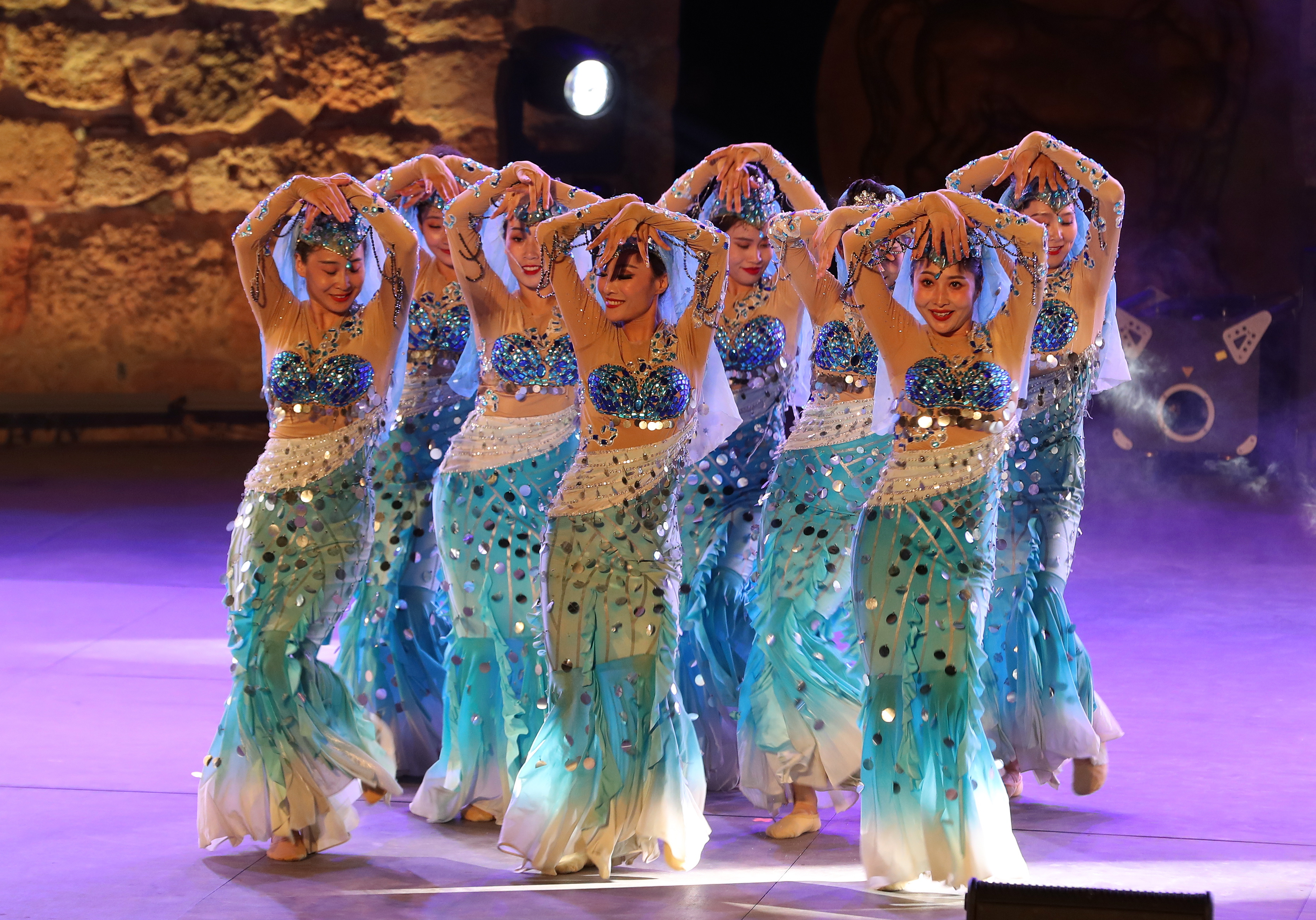 Members of Ningxia Performing Arts Group perform during the 57th edition of the International Festival of Carthage, at the Roman Theater of Carthage, in Tunis, Tunisia on August 9, 2023. (Photo by Mohamed Messara/EPA)