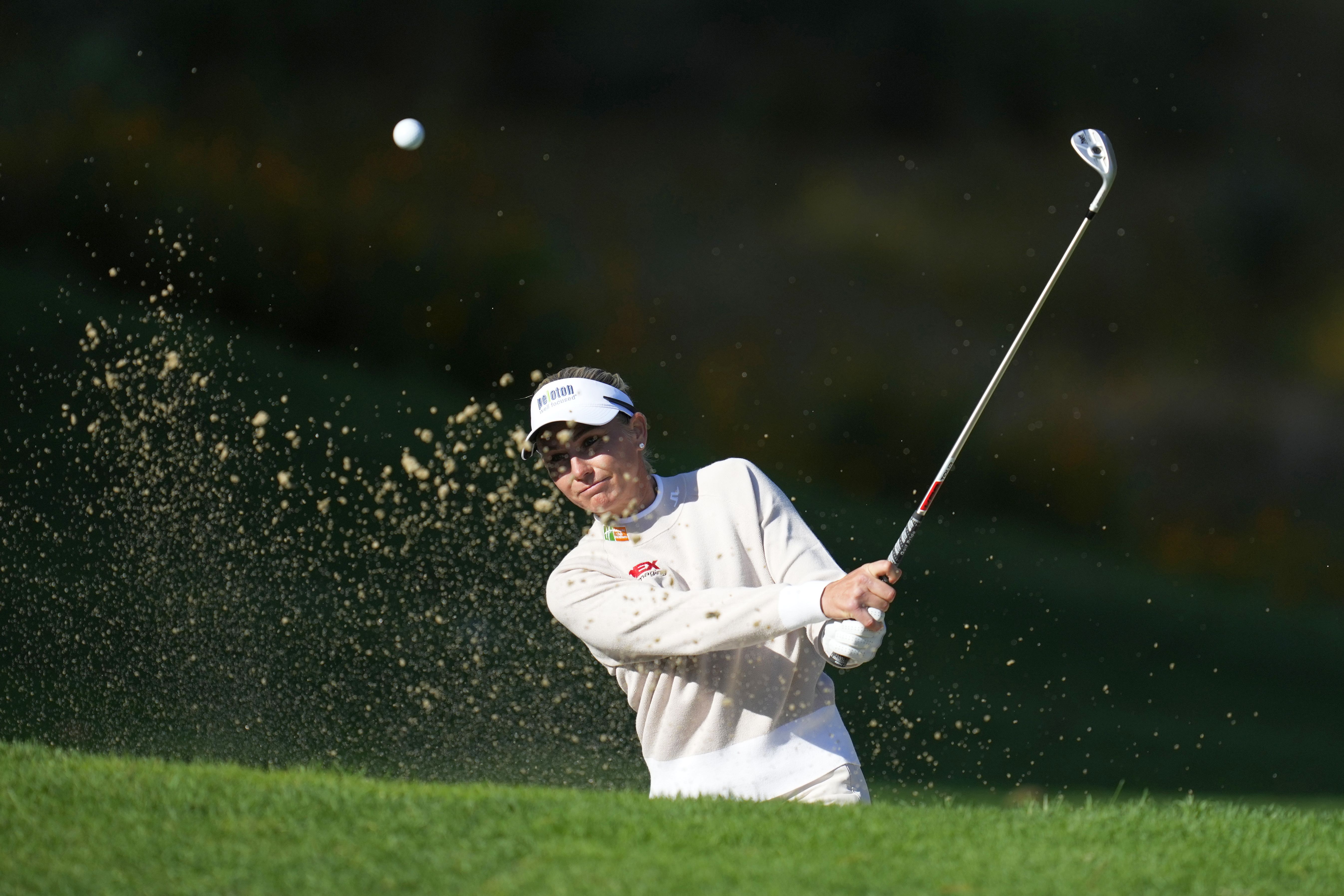 Ryann O'Toole of the United States hits out of a bunker on the 14th green during the final round of the LPGA Ladies Championship golf tournament at the Seowon Valley Country Club in Paju, South Korea, Sunday, October 20, 2024. (Photo by Lee Jin-man/AP Photo)