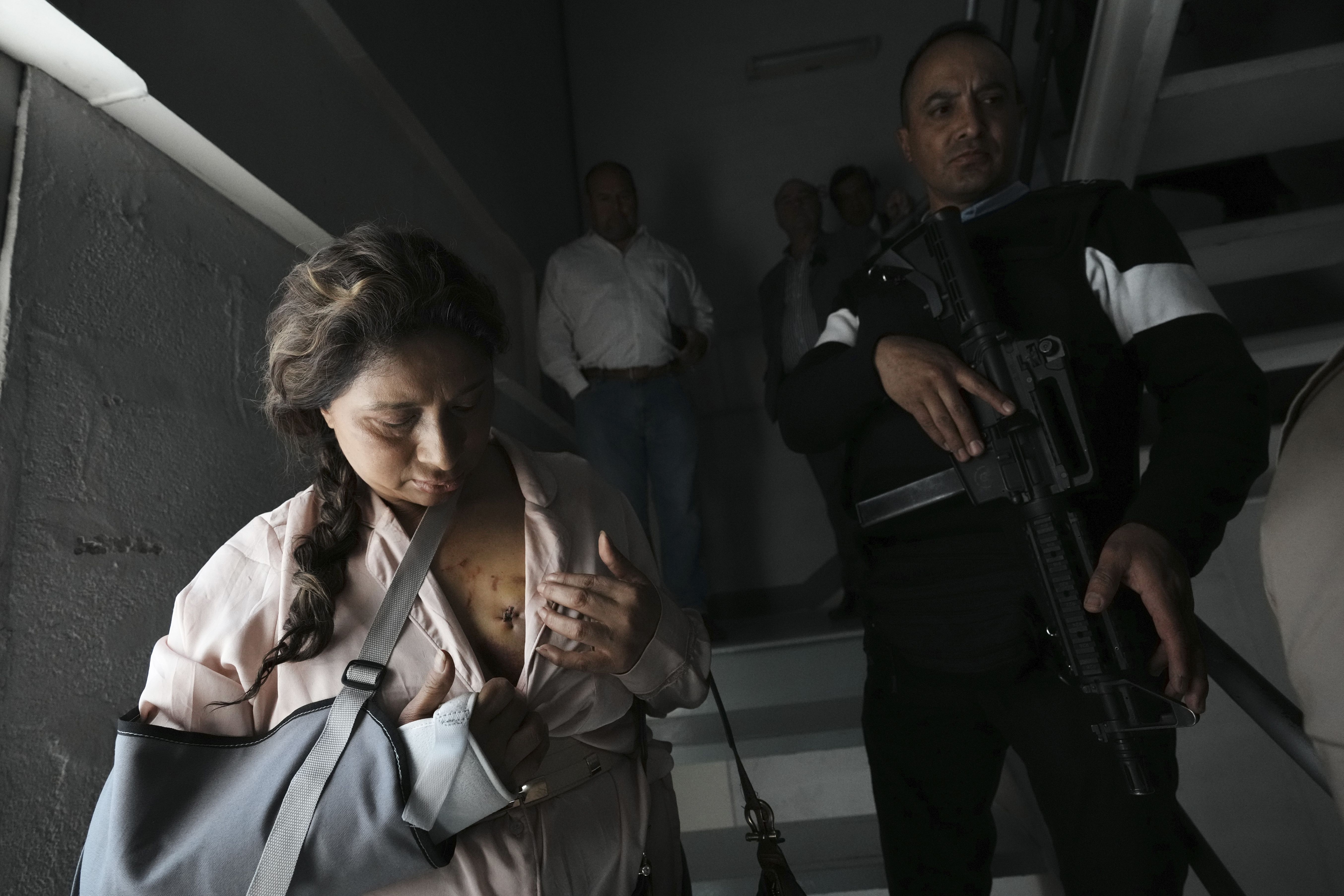 Patricia Barragan, a friend of the family of slain presidential candidate Fernando Villavicencio, shows her stitches after a press conference at which the family announced they will sue the government for not protecting his life while campaigning, in Quito, Ecuador, Friday, August 18, 2023. Ecuadorians will choose a new president Sunday, less than two weeks after the South American country was shaken by the assassination of Villavicencio on Aug. 9. (Photo by Dolores Ochoa/AP Photo)