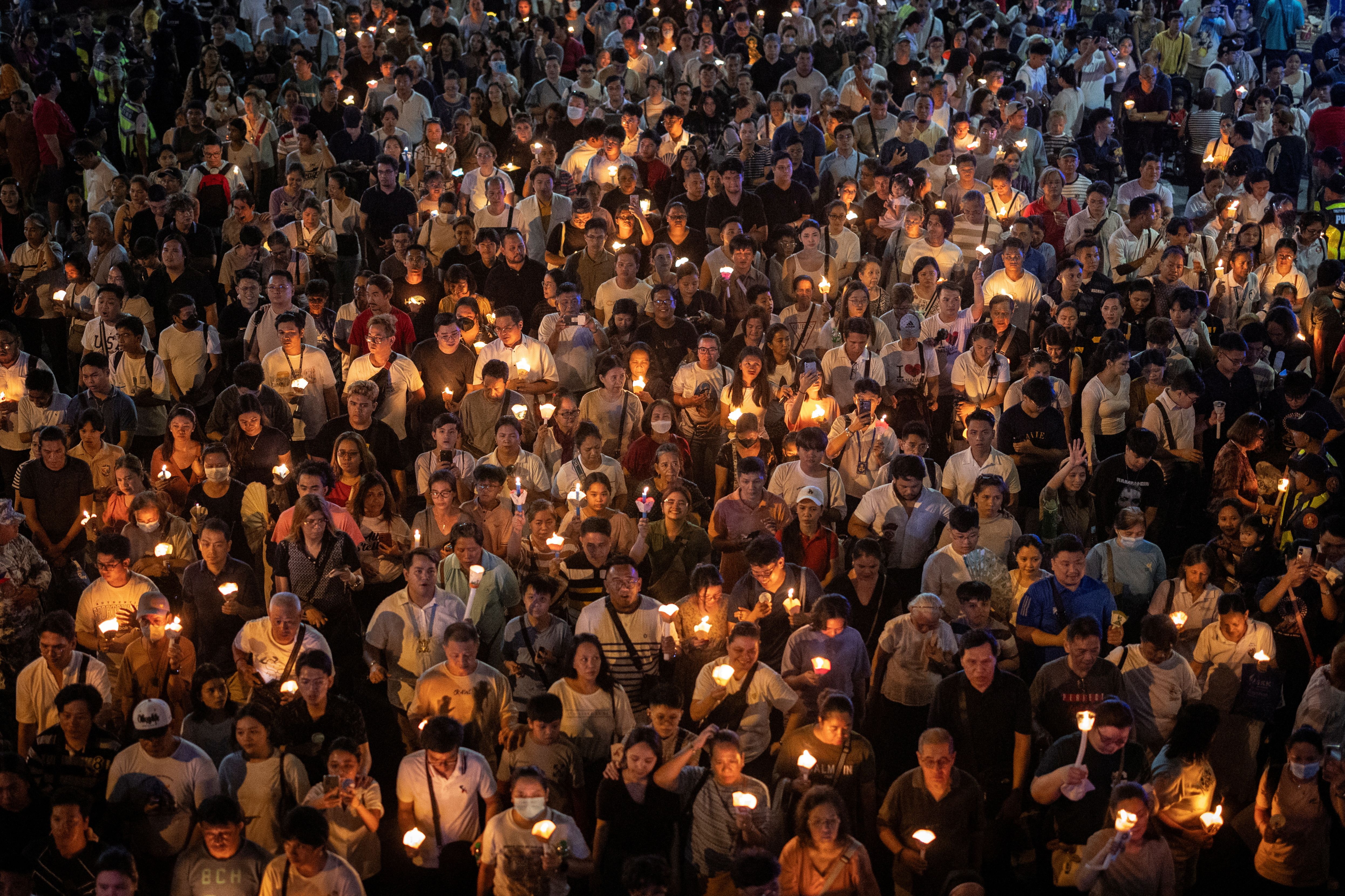 Filipino Catholic devotees participate in the annual procession of Our Lady of the Holy Rosary La Naval de Manila in Quezon City, Philippines, on October 13, 2024. (Photo by Eloisa Lopez/Reuters)