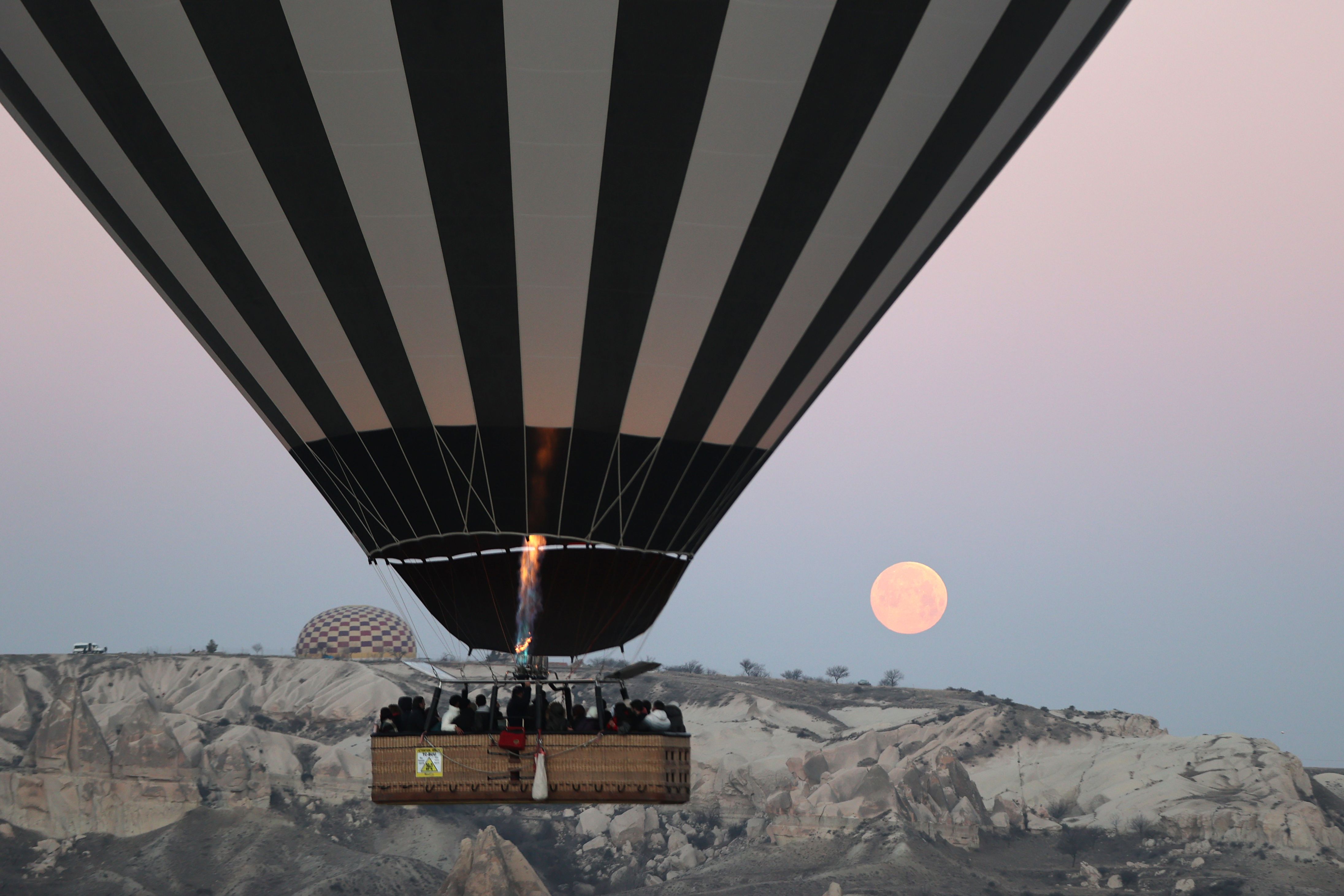 A view of hot air balloons during sunset at Cappadocia in Nevsehir, Turkiye on June 17, 2024. The number of balloon technical personnel increased by 14 per cent last year compared to the previous year, rising from 575 to 654. As of the end of last year, 387 balloon pilots were certified in Turkiye. (Photo by Behcet Alkan/Anadolu via Getty Images)