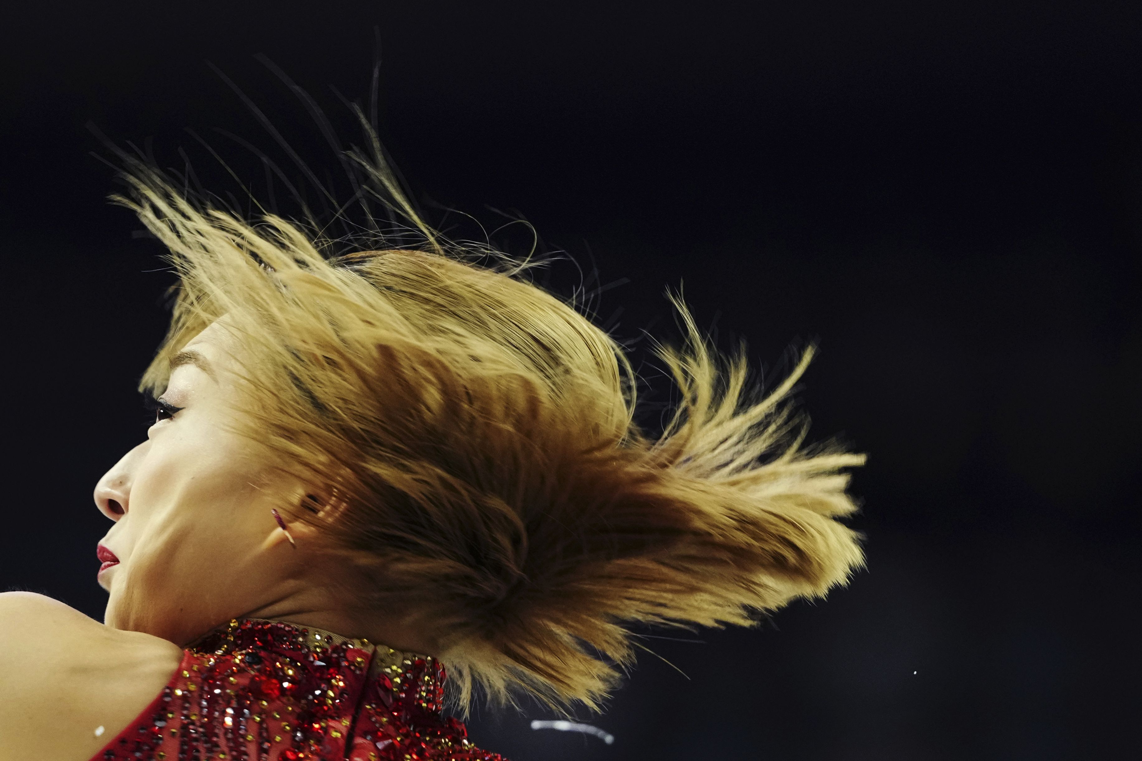 Kaori Sakamoto, of Japan, competes in the women's short program at the Skate Canada International figure skating competition in Halifax, Nova Scotia, Friday, October 25, 2024. (Photo by Darren Calabrese/The Canadian Press via AP Photo)