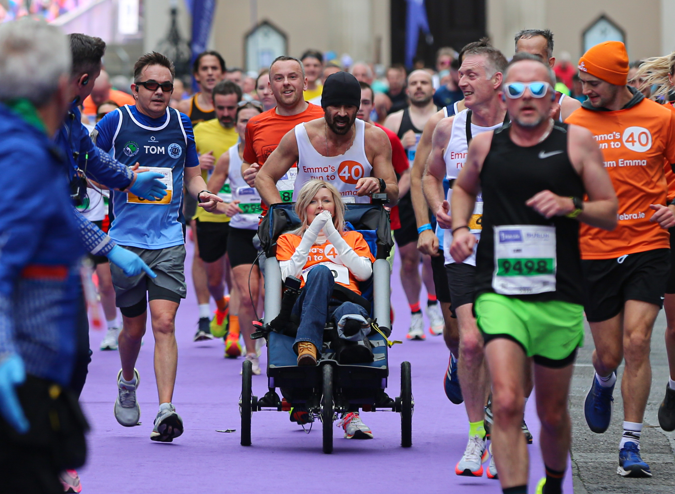 The actor Colin Farrell and his friend Emma Fogarty take part in the city’s marathon to raise money for people living with epidermolysis bullosa, a rare genetic skin condition suffered by Fogarty in Dublin, Ireland on October 27, 2024. (Photo by Damien Storan/PA Wire)