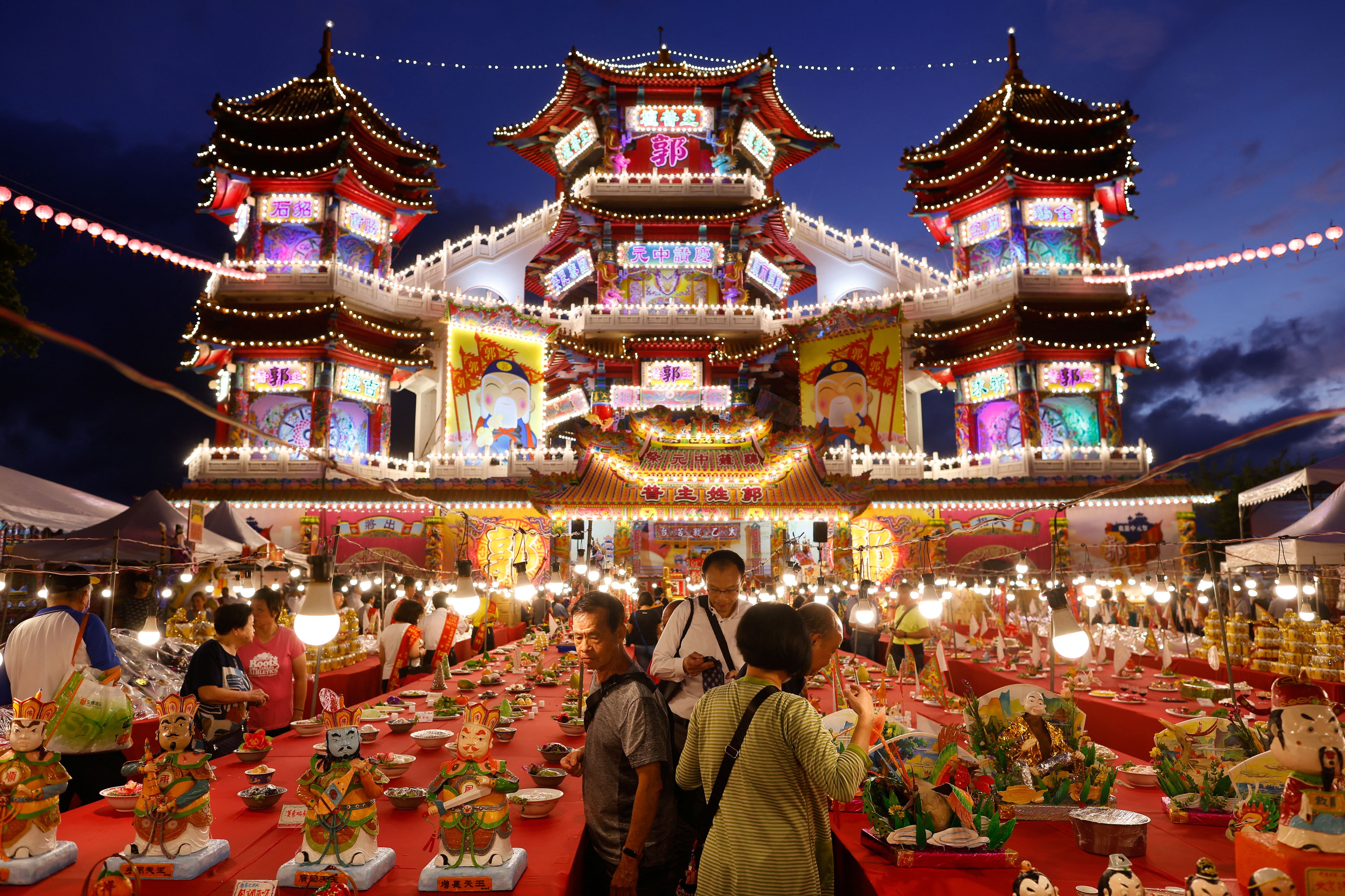 People prepare for the annual Hungry Ghost Festival prayer in Keelung, Taiwan on August 30, 2023. (Photo by Ann Wang/Reuters)