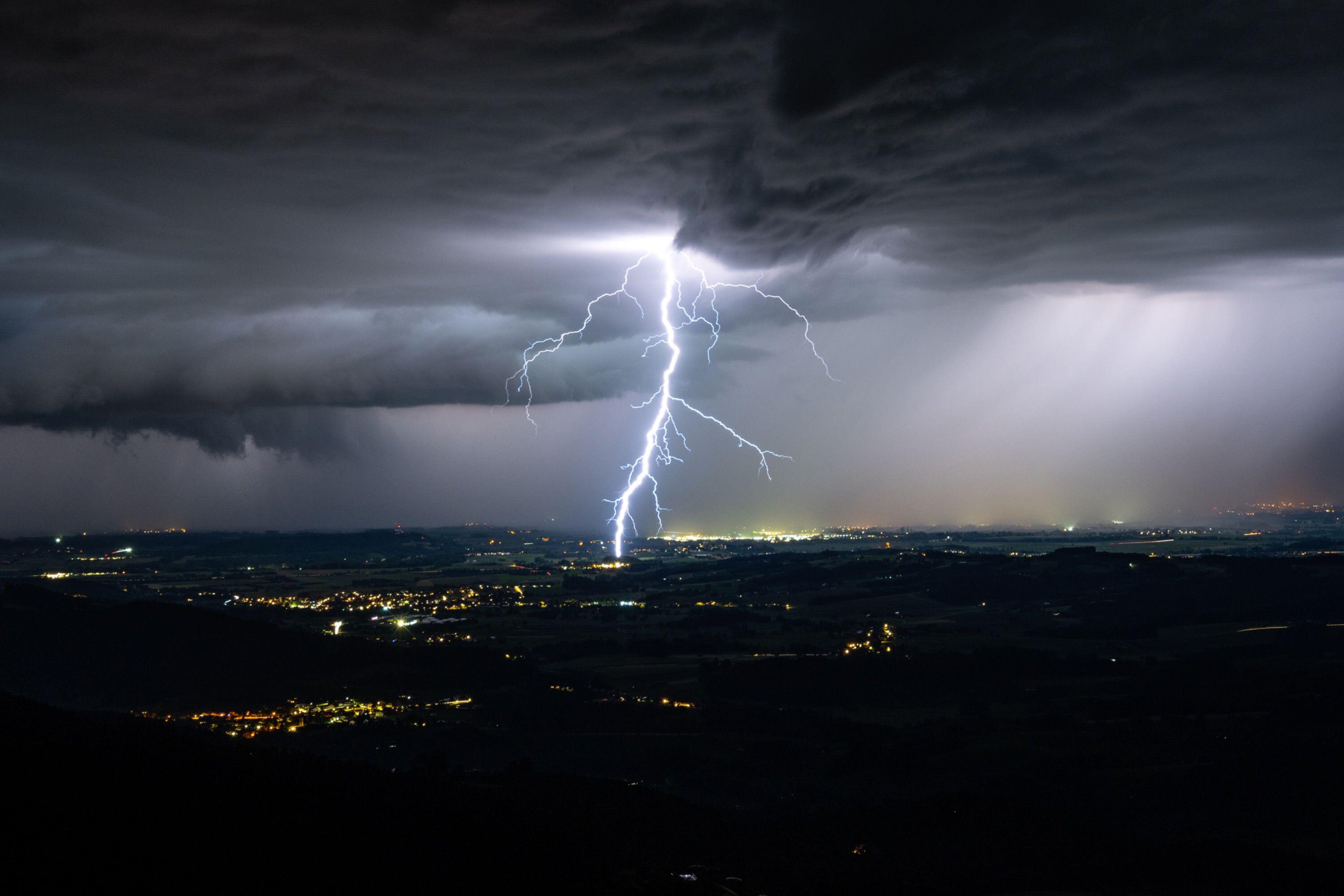Lightning lights up the night sky, photographed from the Schuhchristleger, a panoramic mountain near Haibach in the district of Straubing, Germany on May 27, 2024. Heavy thunderstorms and torrential rain triggered several fire department and police operations in the east and south of Bavaria on Tuesday night. (Photo by St. Wintermeier/zema-medien/dpa/Alamy Live News)