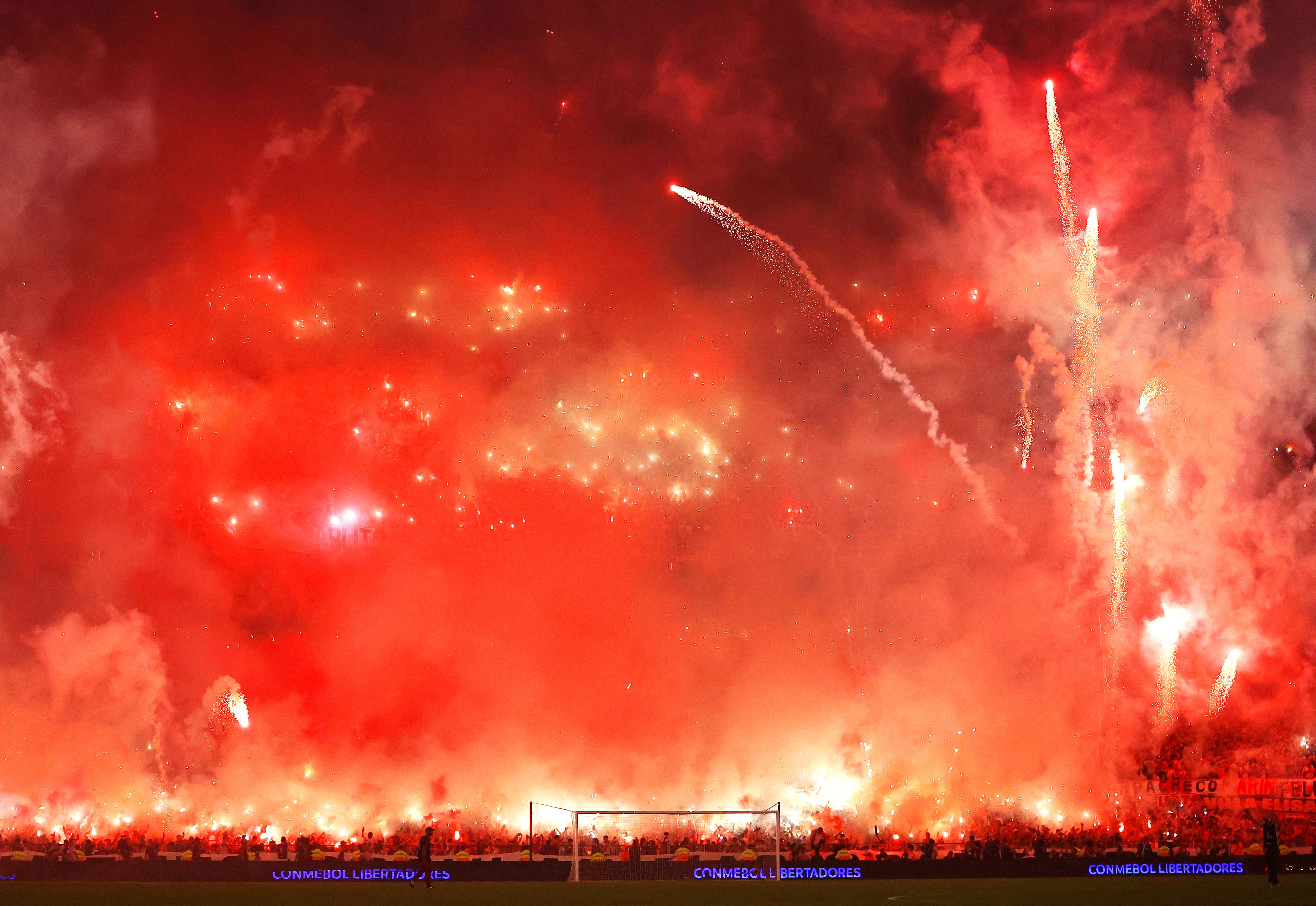 Flares fly and fans get excited for the Copa Libertadores semi-final at Estadio Mas Monumental in Buenos Aires on Wednesday, October 29, 2024. However, Argentinians may have celebrated too soon as their home team, River Plate, was knocked out by Atlético Mineiro of Brazil. (Photo by Agustin Marcarian/Reuters)