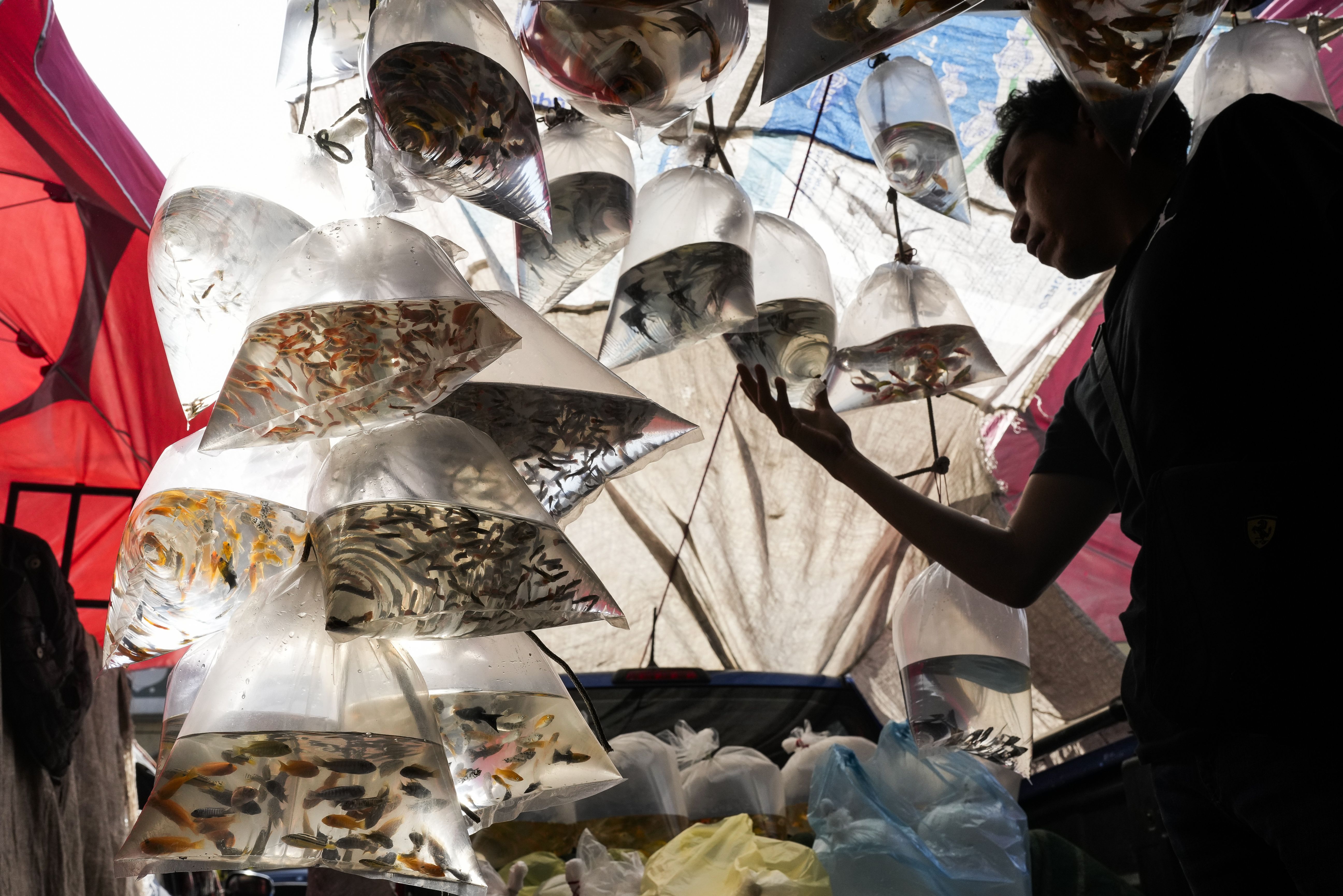 A customer selects a bag of pet fish at a fish market in Mexico City, Saturday, June 1, 2024. (Photo by Matias Delacroix/AP Photo)