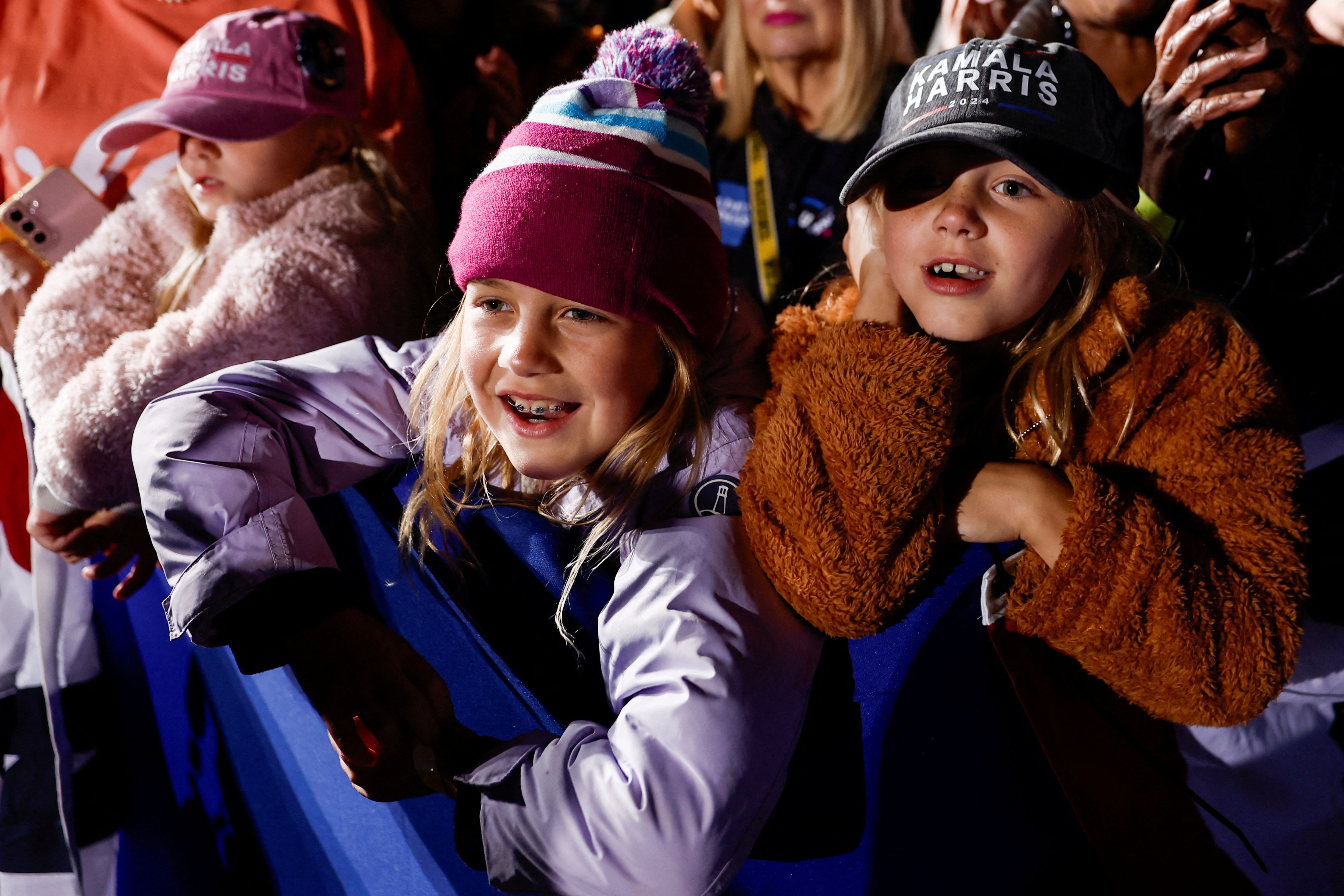 Young supporters listen to Kamala Harris speak during a campaign rally and concert in Ann Arbor, Michigan on October 29, 2024. (Photo by Evelyn Hockstein/Reuters)