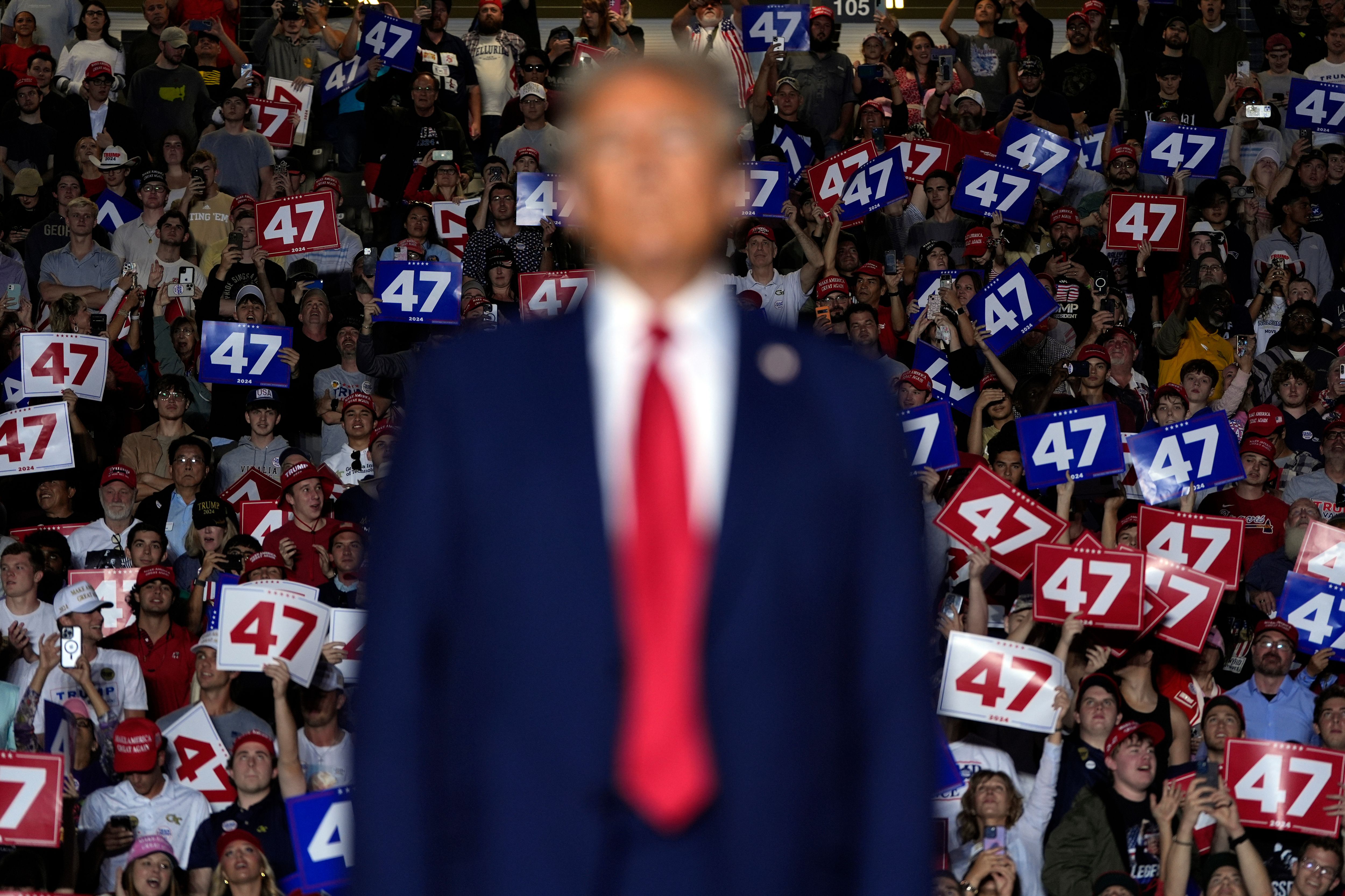 Republican presidential nominee former President Donald Trump dances at a campaign rally at PPL Center, Tuesday, October 29, 2024, in Allentown, Pa. (Photo by Julia Demaree Nikhinson/AP Photo)