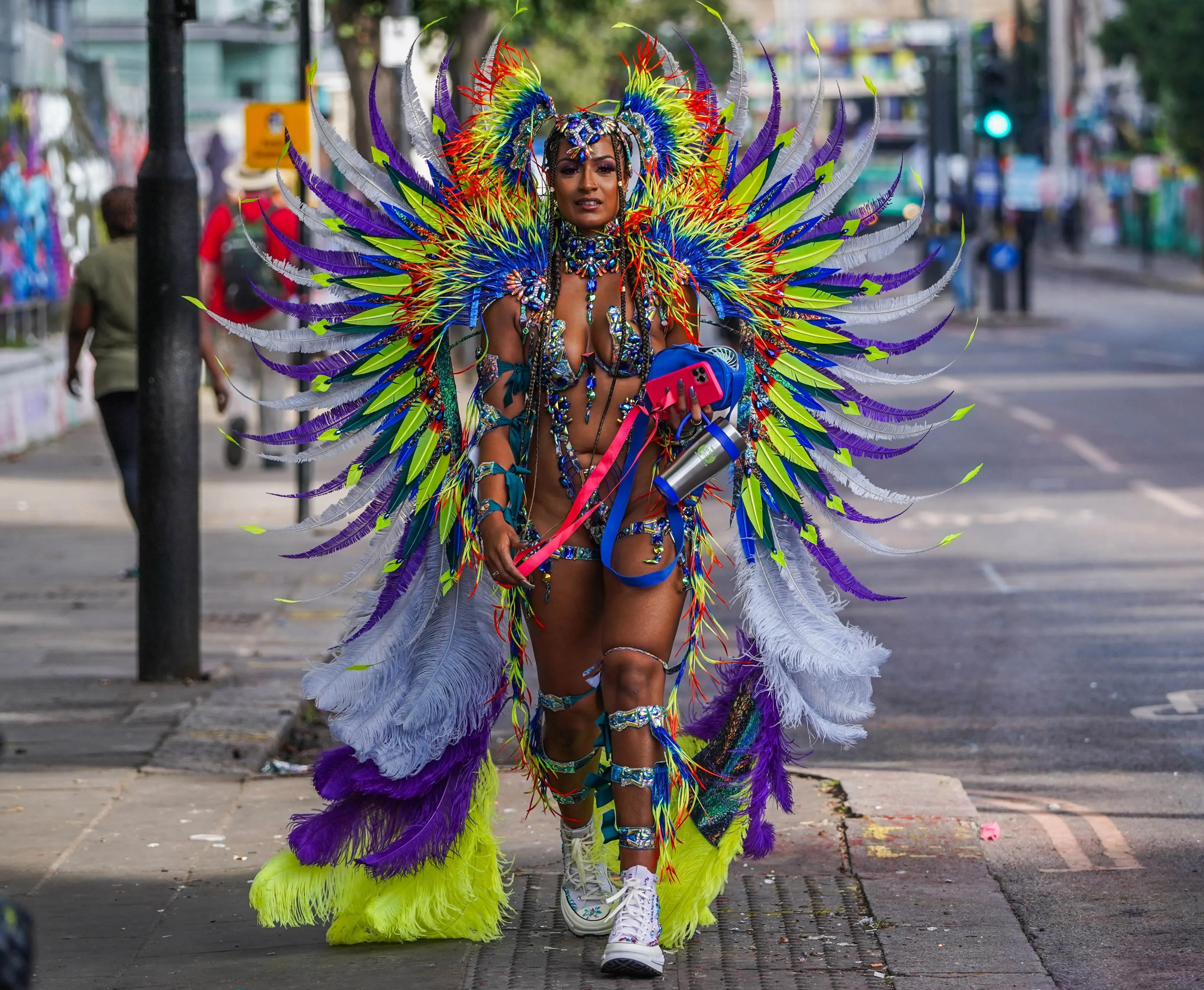 Participants in feathered costumes representing birds of the tropics taking part in the carnival parade in London, United Kingdom on August 28, 2023. The Notting Hill Carnival is Europe's largest street festival, which celebrates Caribbean culture, is expected to attract over 1 million revellers on bank holiday monday. (Photo by Amer Ghazzal/Rex Features/Shutterstock)
