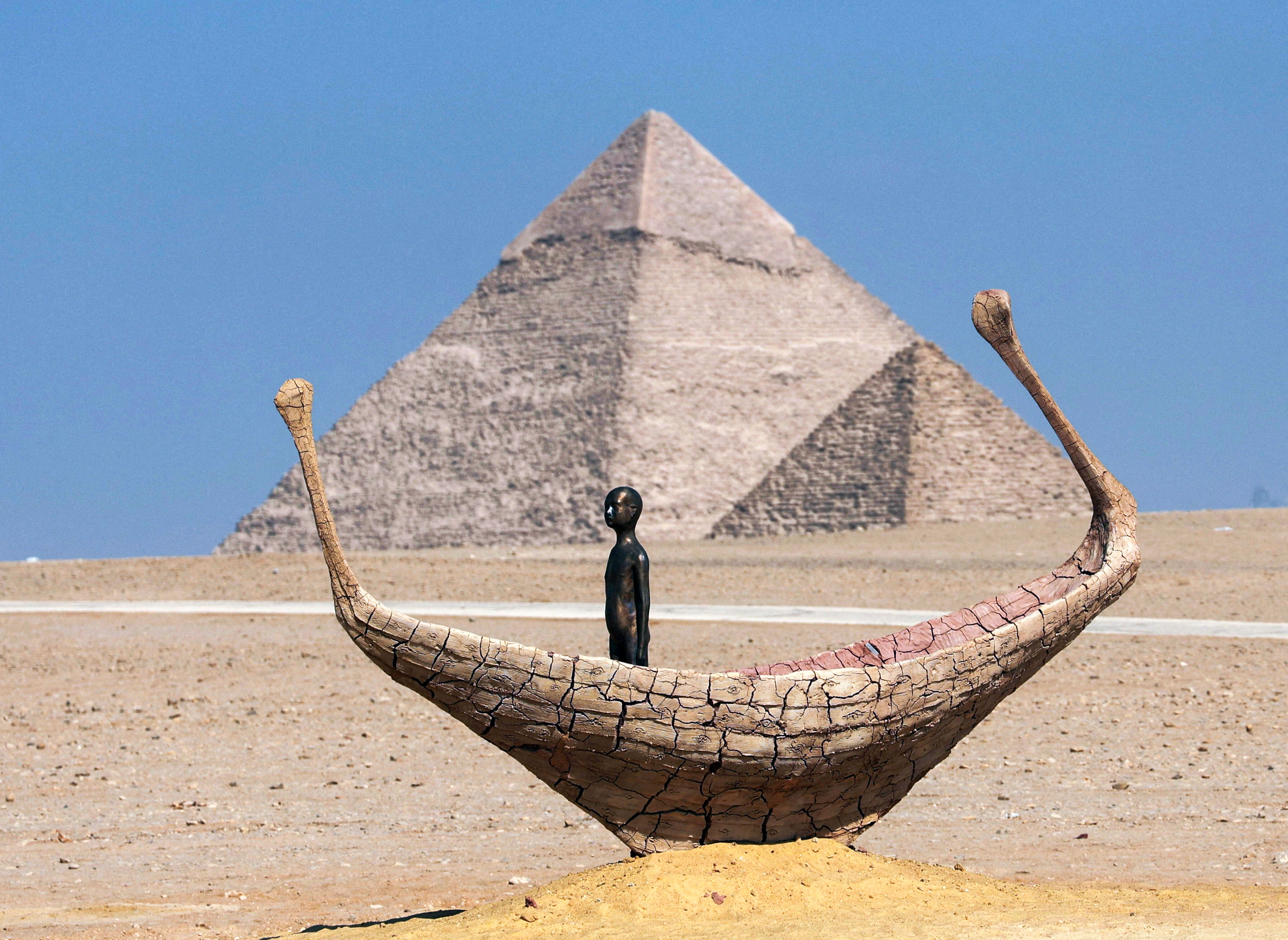A view shows an art installation by visual artist Jean Marie Appriou titled “Vessel of Time” during the fourth edition of “Forever is Now”, an international art exhibition provided by Art D'Egypte that reimagines Egypt's ancient civilization through contemporary art in Giza Pyramids, on the outskirts of Cairo, Egypt, on November 4, 2024. (Photo by Amr Abdallah Dalsh/Reuters)