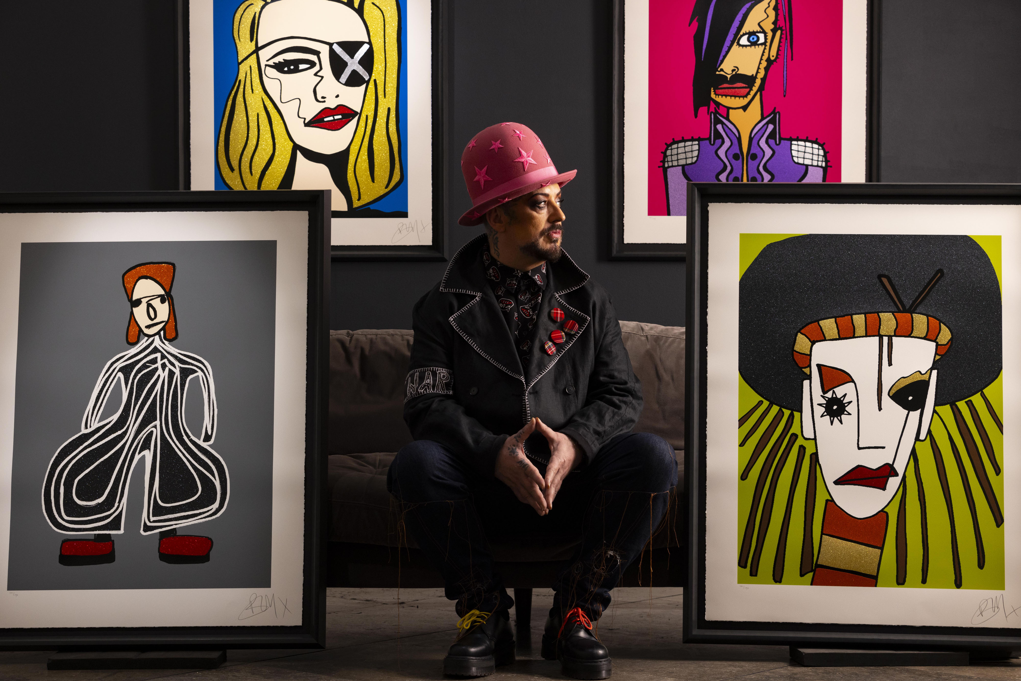 English singer, songwriter and DJ Boy George unveils a collection of artworks at Castle Fine Art as they go on sale worldwide on Friday, October 25, 2024. (Photo by David Parry/PA Media Assignments)