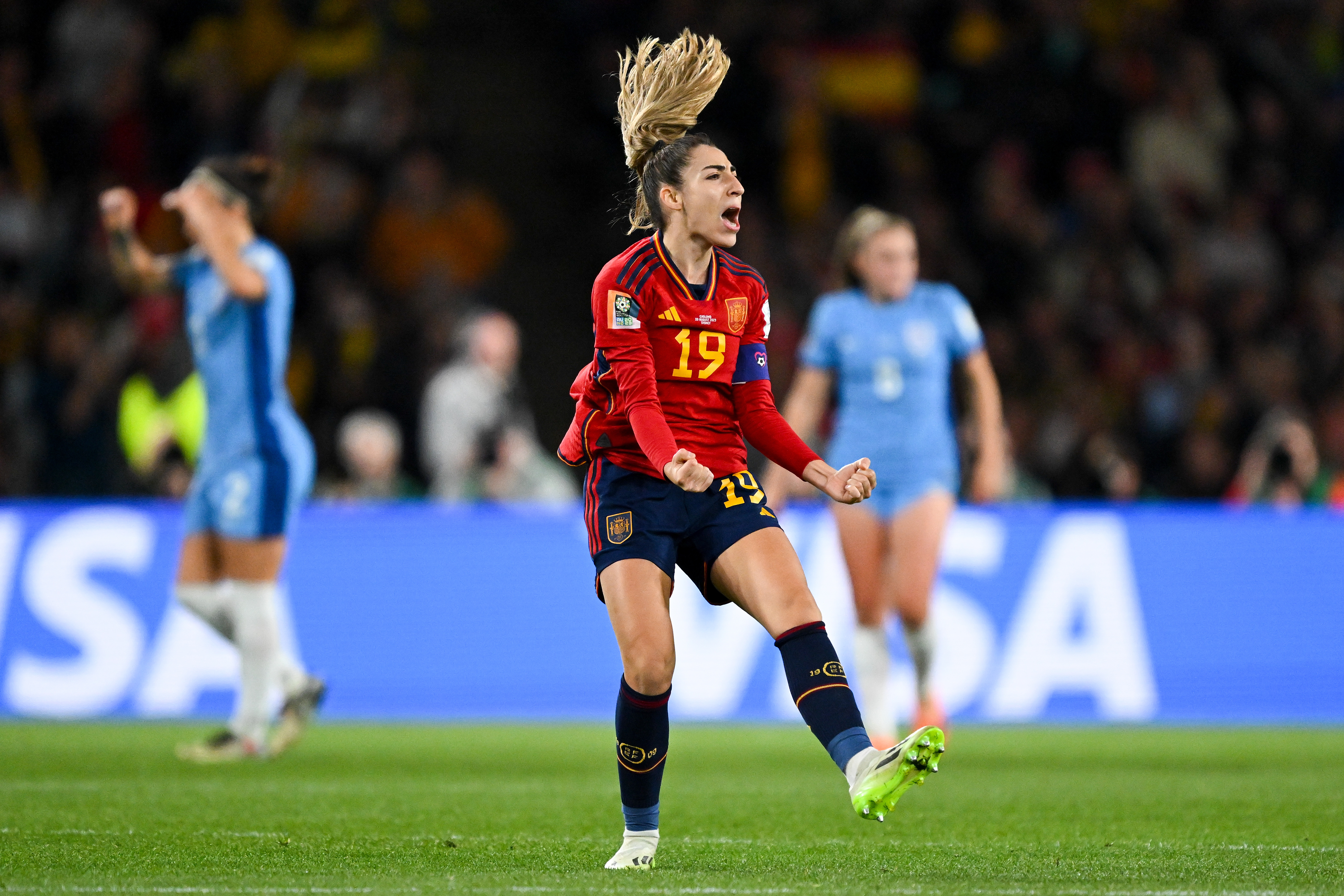 Olga Carmona of Spain celebrates after scoring a goal during the FIFA Women's World Cup 2023 Final soccer match between Spain and England at Stadium Australia in Sydney, Australia, 20 August 2023. (Photo by Dean Lewins/EPA/EFE)